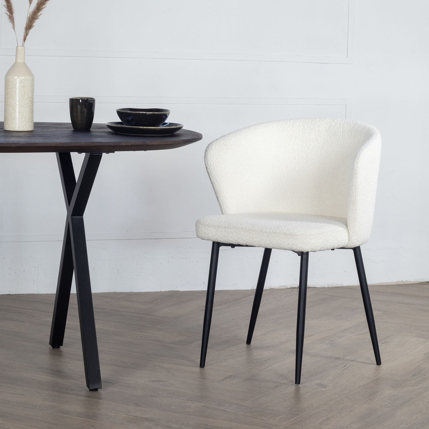 Giga Meubel - Eetkamerstoel Bouclé - Wit - Stoel Juliette - Set van 2