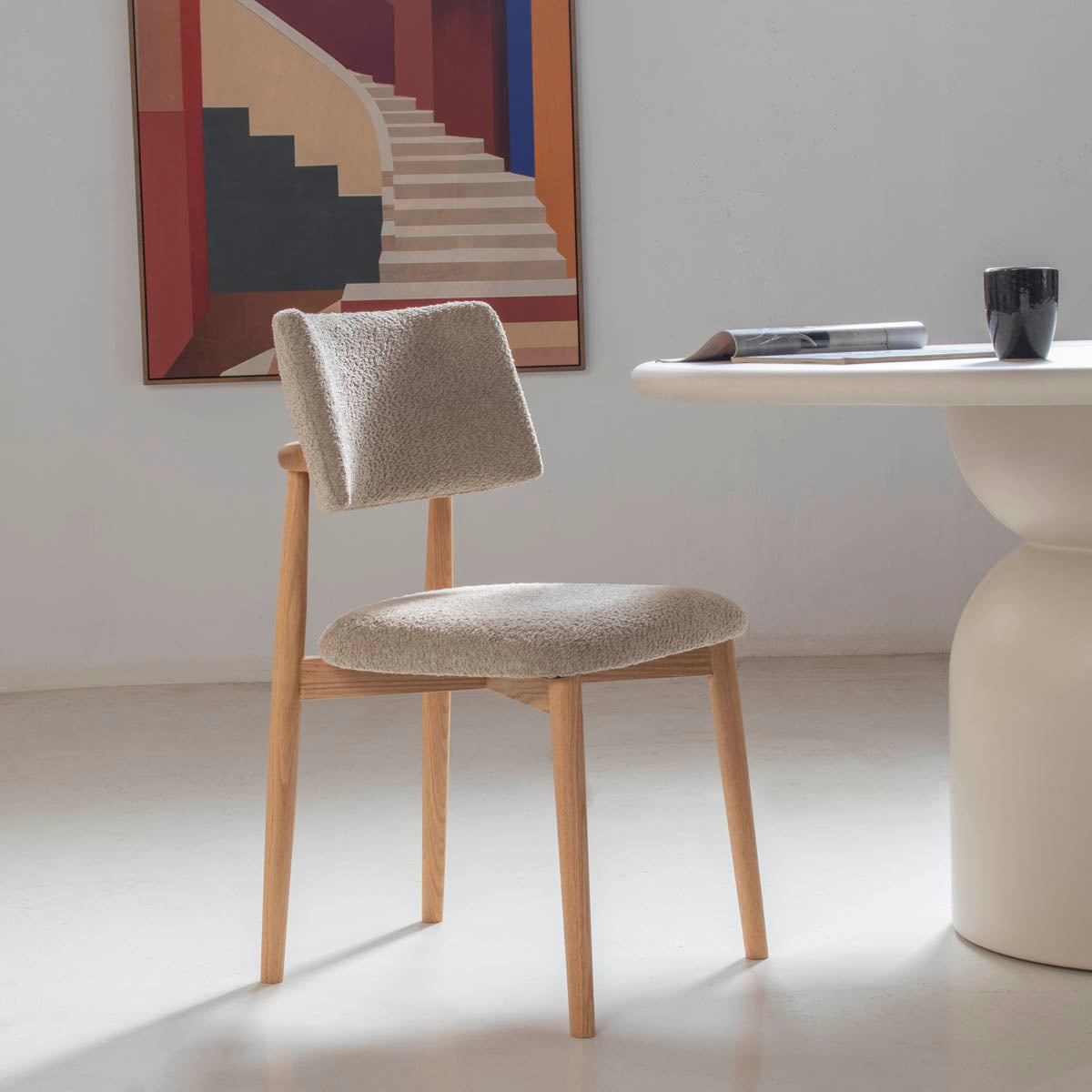 De Eetkamerstoel Nova in Taupe van Giga Meubel is een prachtige toevoeging aan je interieur. Deze stoel straalt de Scandinavische stijl uit en combineert het natuurlijke teakhout met een comfortabele polyester bekleding. De taupe kleur zorgt voor een warme en uitnodigende uitstraling, perfect voor elke eetkamer. De stoel is ontworpen met oog voor detail en biedt zowel stijl als comfort, waardoor het een ideale keuze is voor dagelijks gebruik.