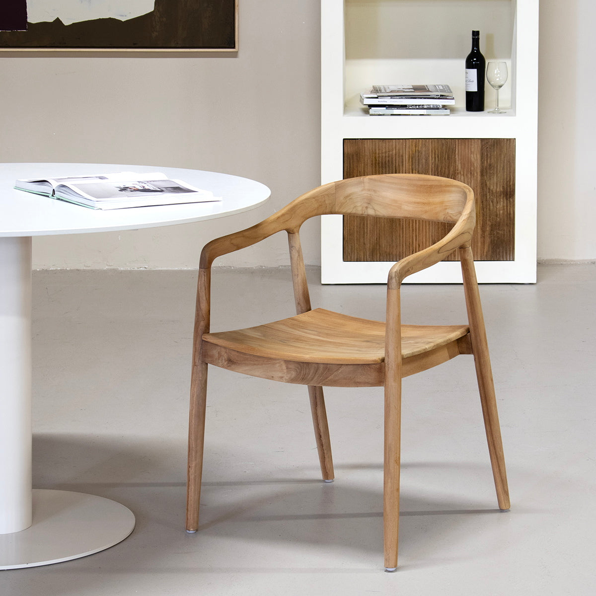 Maak kennis met de Eetkamerstoel Lasse Teakhout, een moderne eyecatcher die jouw eetkamer compleet maakt. Deze stoel, vervaardigd uit hoogwaardig teakhout en afgewerkt in een naturel kleur, belooft niet alleen een stijlvolle toevoeging te zijn maar ook een duurzame keuze. Het ontwerp met armleuningen zorgt voor extra comfort tijdens het dineren of werken. Perfect voor wie houdt van een moderne stijl met een natuurlijke touch.