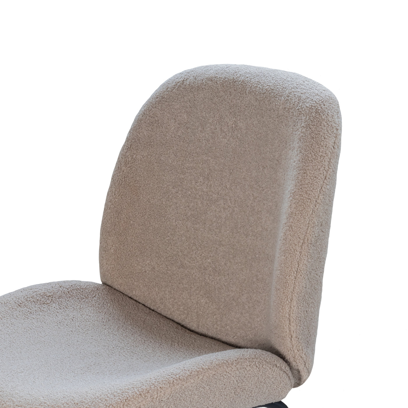 Materiaal: De zitting van de stoel is gemaakt van zacht teddy materiaal, wat zorgt voor een comfortabele zitervaring. Het onderstel is vervaardigd uit stevig metaal, wat de stoel een stabiele basis geeft.