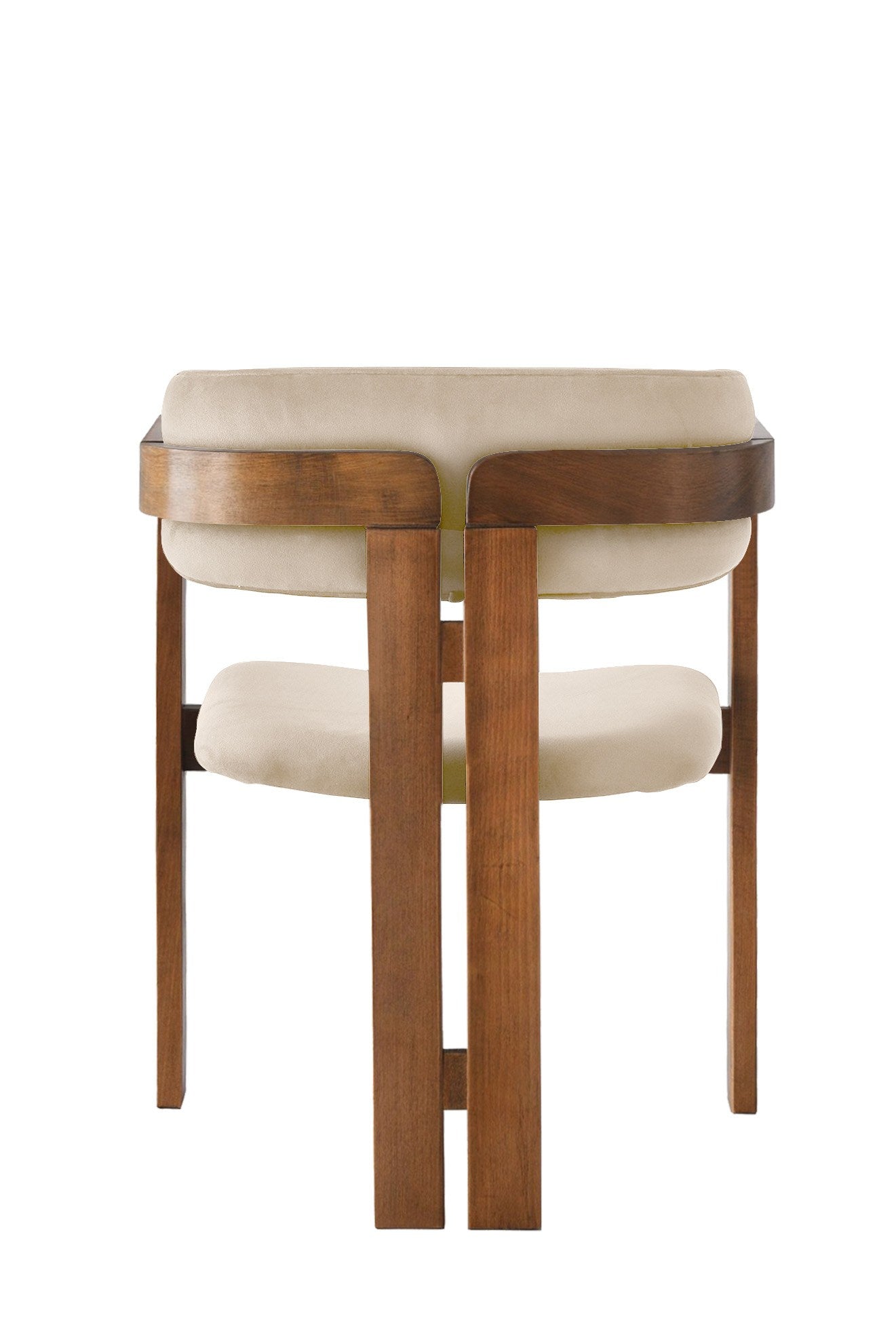 Met zijn prachtige combinatie van walnoot en beige kleuren voegt deze stoel moeiteloos een vleugje verfijning toe aan elke ruimte. Of het nu je woonkamer, slaapkamer of kantoor is, deze stoel zal je inrichting opwaarderen en het middelpunt van bewondering worden voor al je gasten.