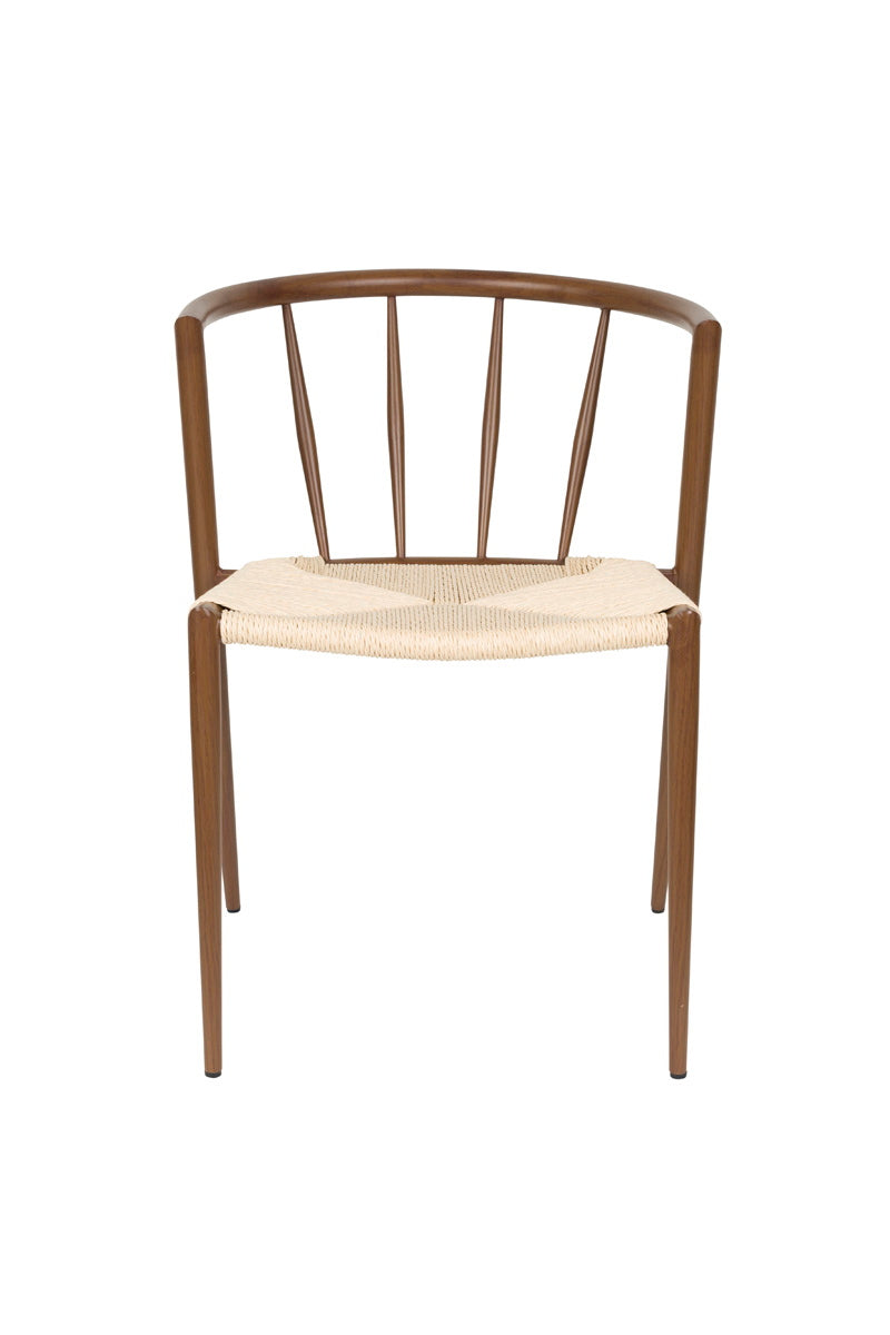 Materiaal: De zitting van de Eetkamerstoel Che is vervaardigd uit gevlochten papier, wat zorgt voor een unieke en natuurlijke uitstraling. Het ijzeren frame biedt stevigheid en stabiliteit, waardoor de stoel zowel stijlvol als functioneel is.