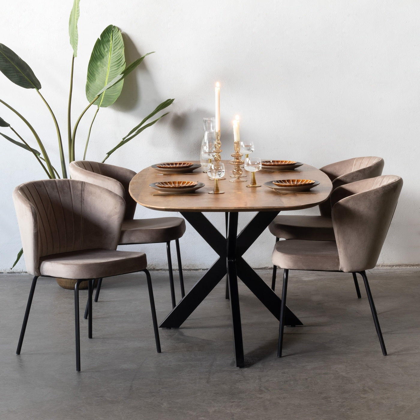 Ontdek de perfecte combinatie van stijl en functionaliteit met de Eettafel Jordan in een prachtige bruine kleur. Deze tafel, met zijn unieke Deense ovale vorm, is vervaardigd uit hoogwaardig mangohout en ondersteund door een stevig metalen onderstel. De urban/chic stijl, gecombineerd met de matte afwerking van het tafelblad, maakt deze tafel tot een eyecatcher in elke eetkamer. Het mangohout zorgt voor een warme en natuurlijke uitstraling, terwijl het metalen onderstel een industrieel tintje toevoegt.