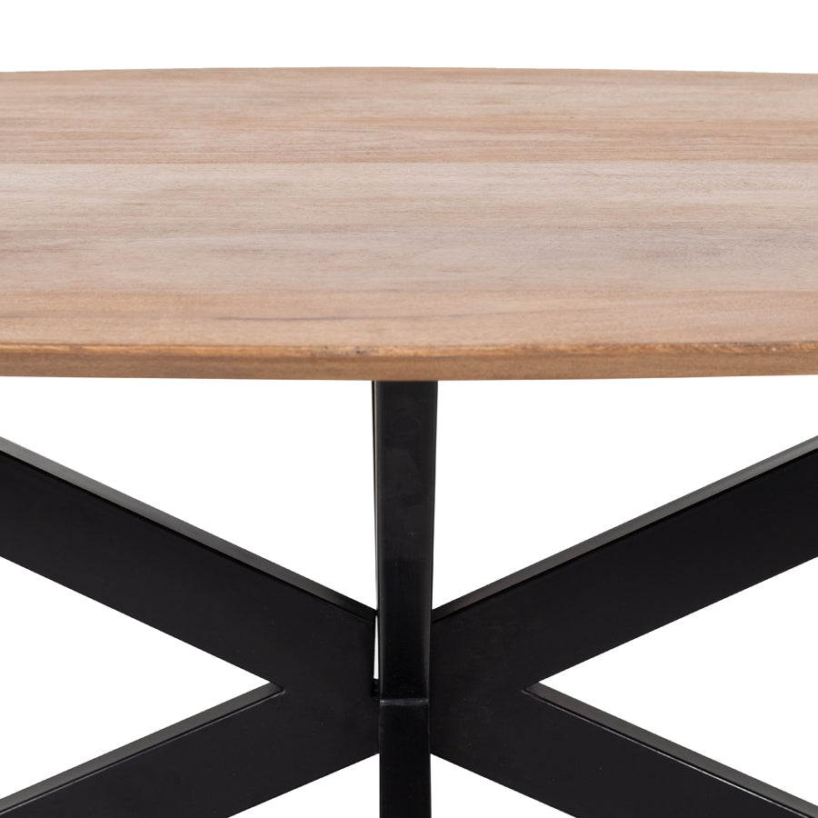 Materiaal: De tafel is gemaakt van hoogwaardig mangohout voor het tafelblad en stevig metaal voor het onderstel. Deze materialen zorgen samen voor een robuuste en duurzame constructie die jarenlang mee zal gaan.