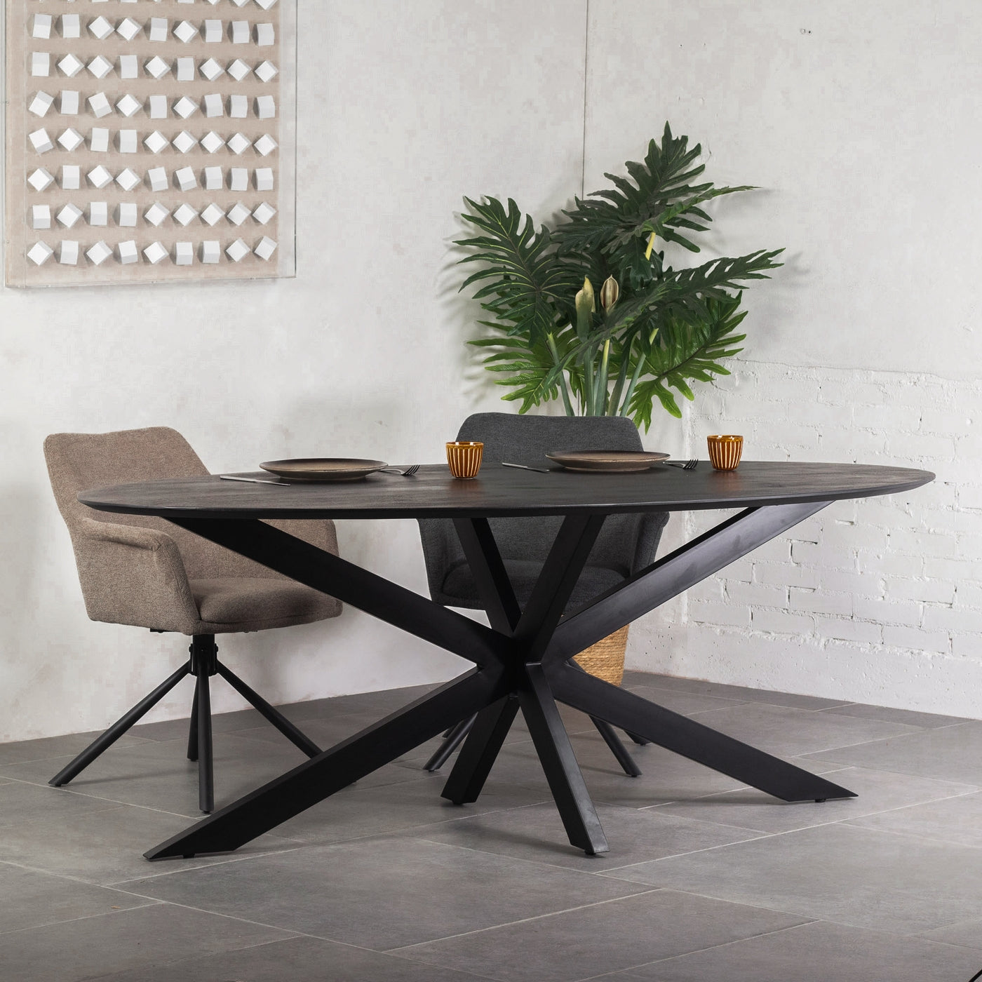 Eettafel Ziggy Zwart Ovaal 200cm Spinpoot - Giga Meubel
