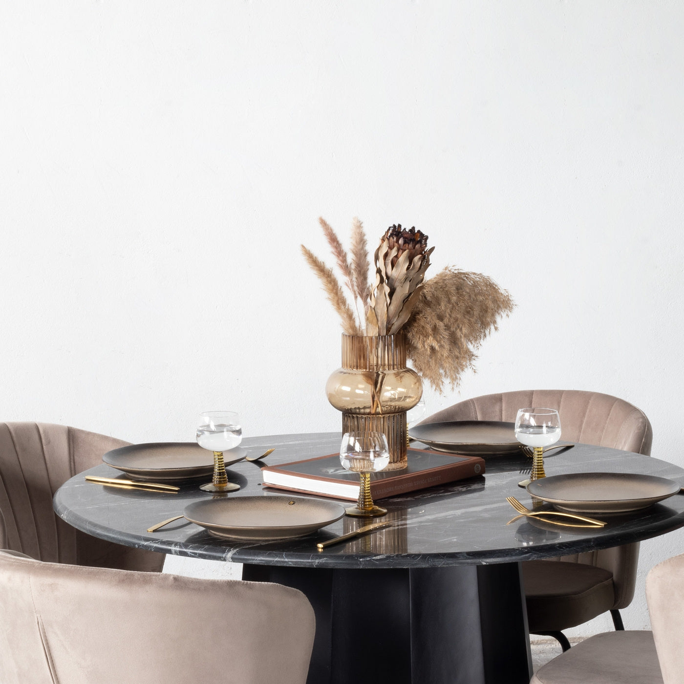 - Het tafelblad van de eettafel Bodhi is gemaakt van marmer, Dit geeft de tafel een chique uitstraling.