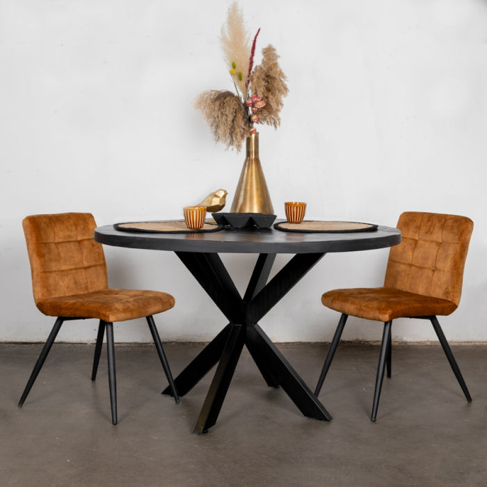 - Eettafel Eljero van Giga Meubel is gemaakt van mango hout met een zwart ijzeren onderstel.