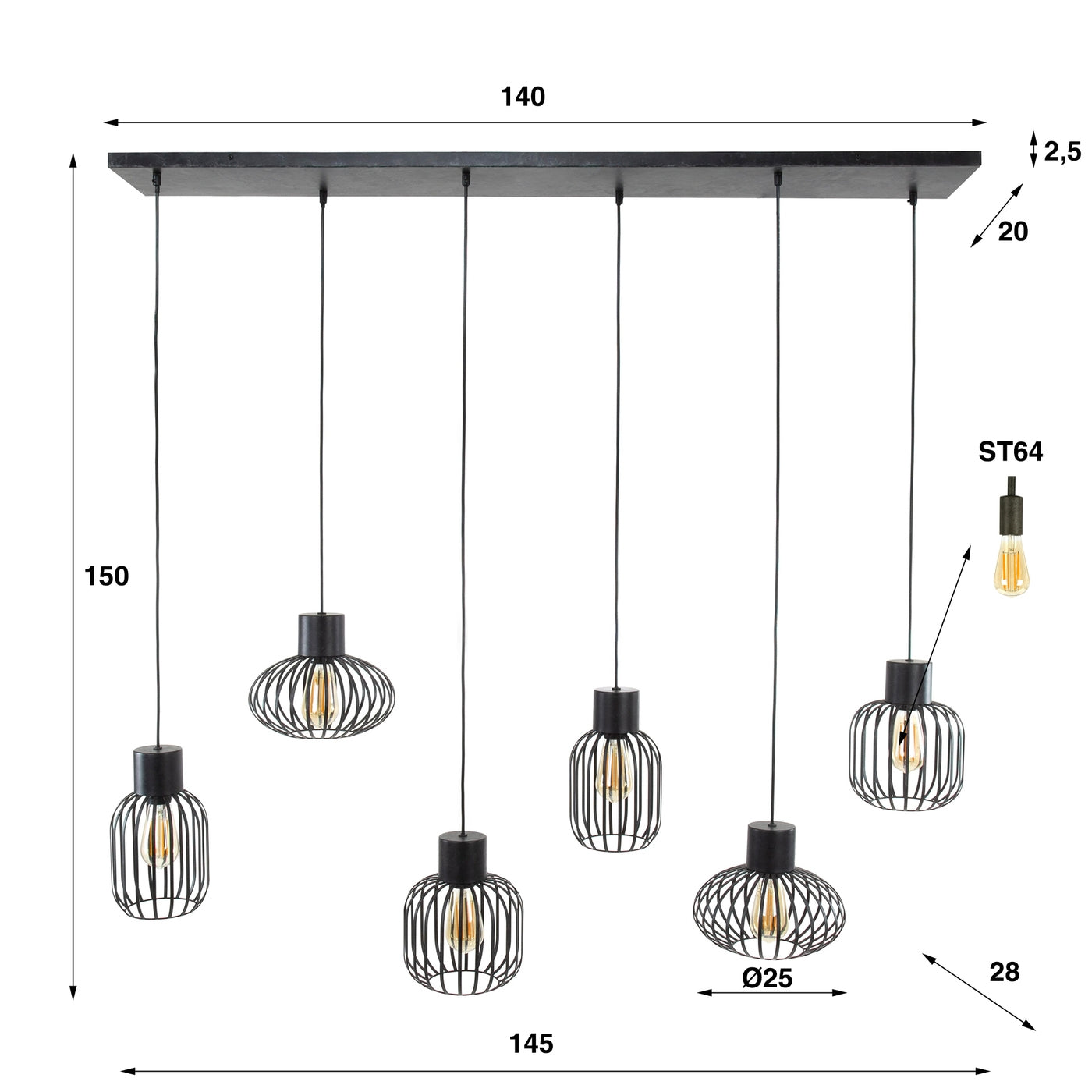 Giga Meubel - Hanglamp Zwart - 6-Lichts - 150x145x28cm - Mix