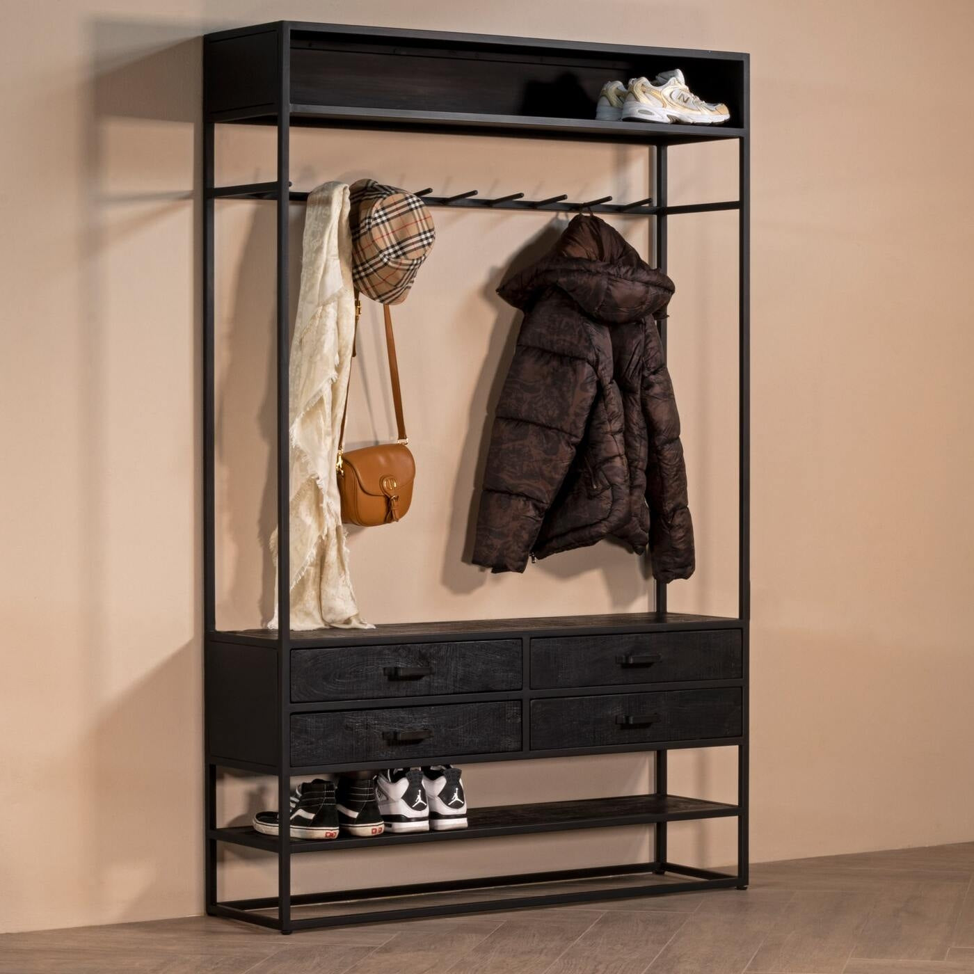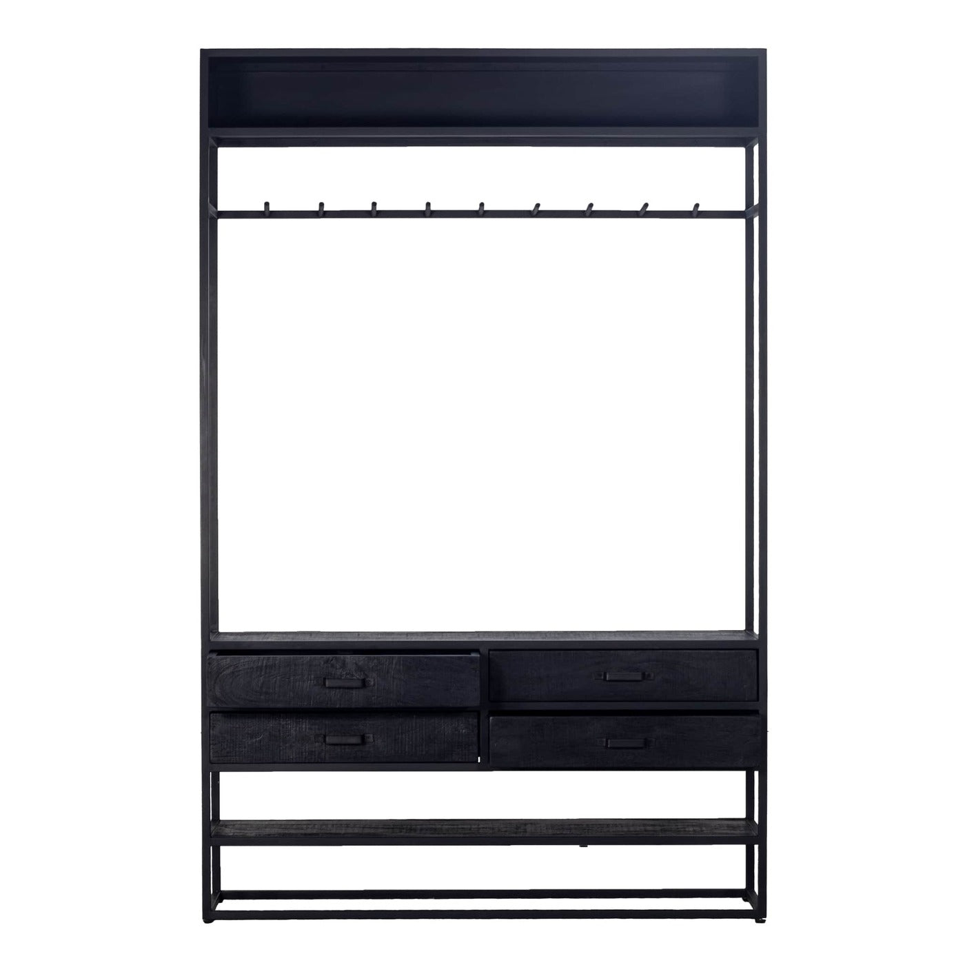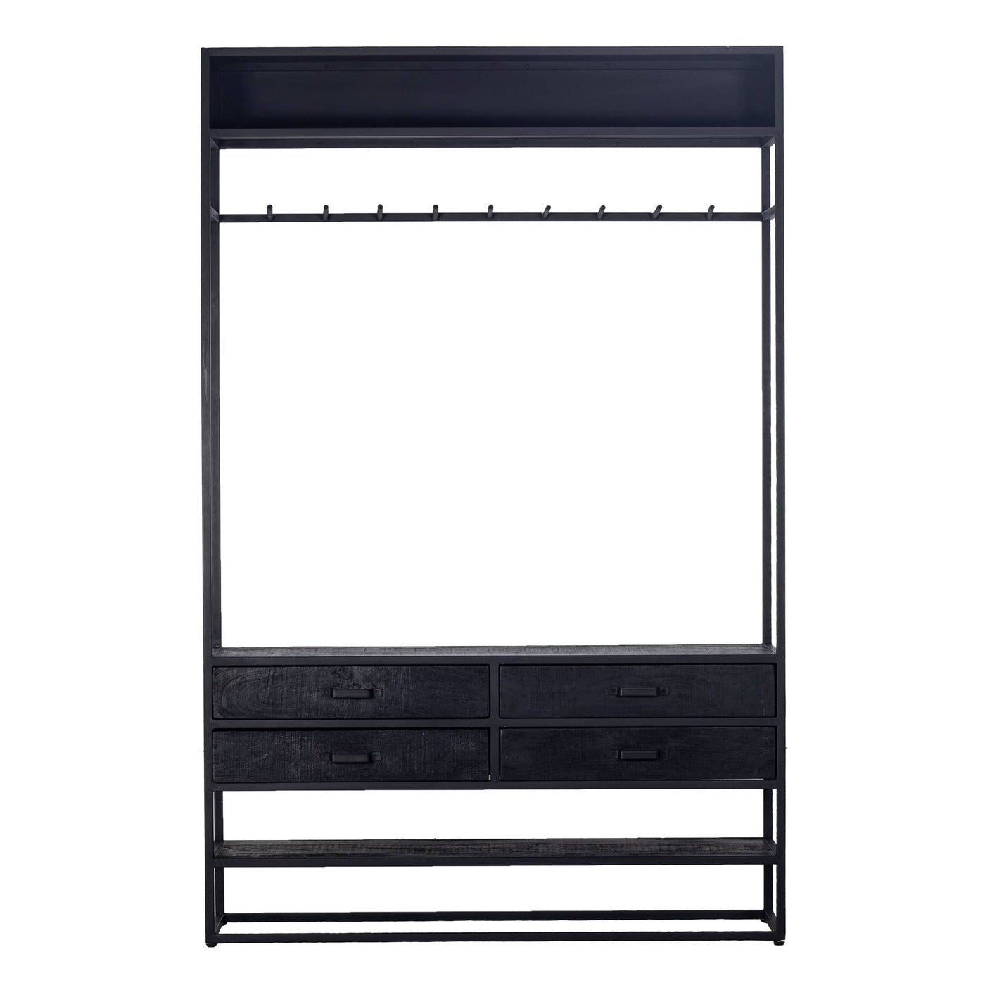 Kapstok Kast Lino Zwart Met Rek en Lades - Giga Meubel