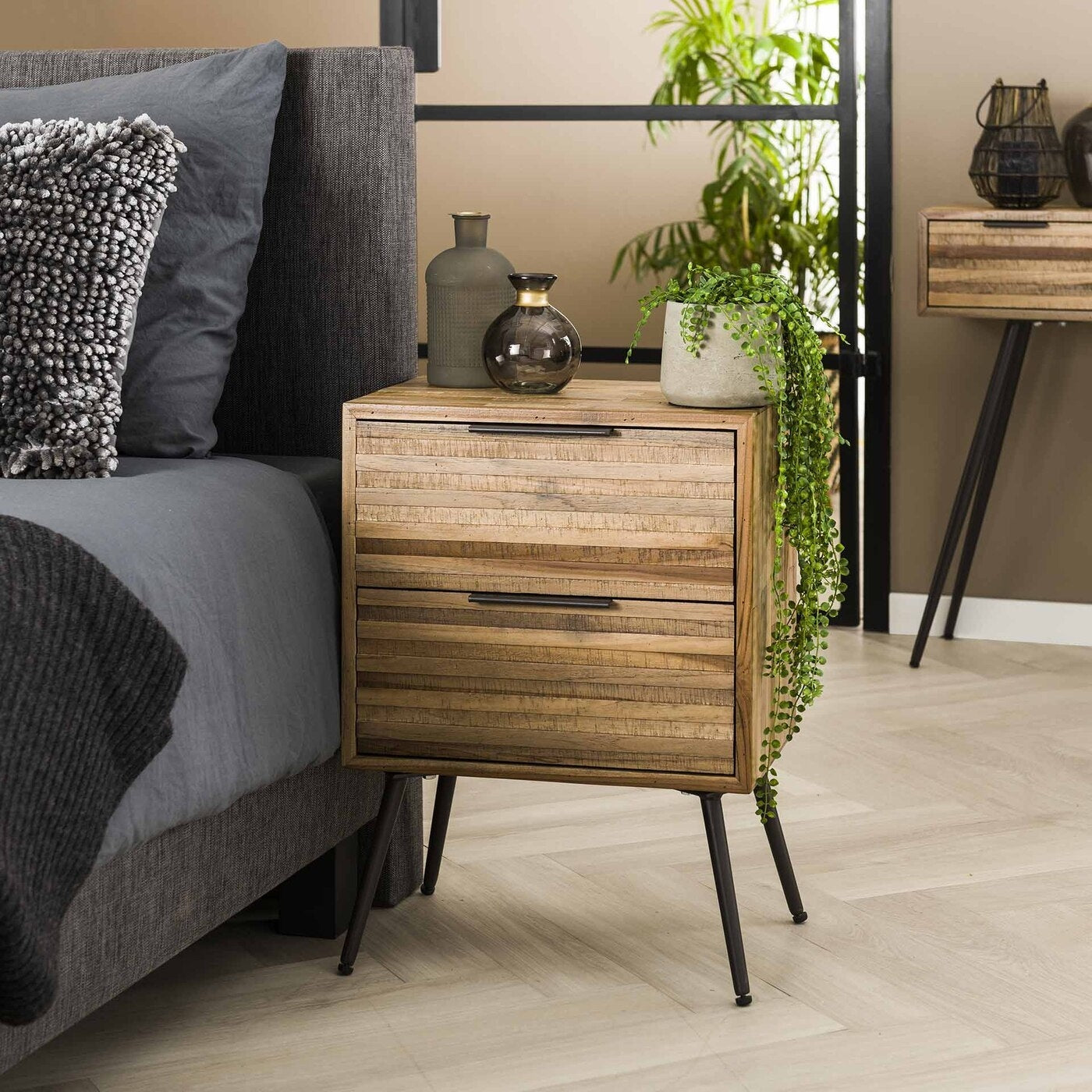 Nachtkastje 2L Teca Strip - Giga Meubel