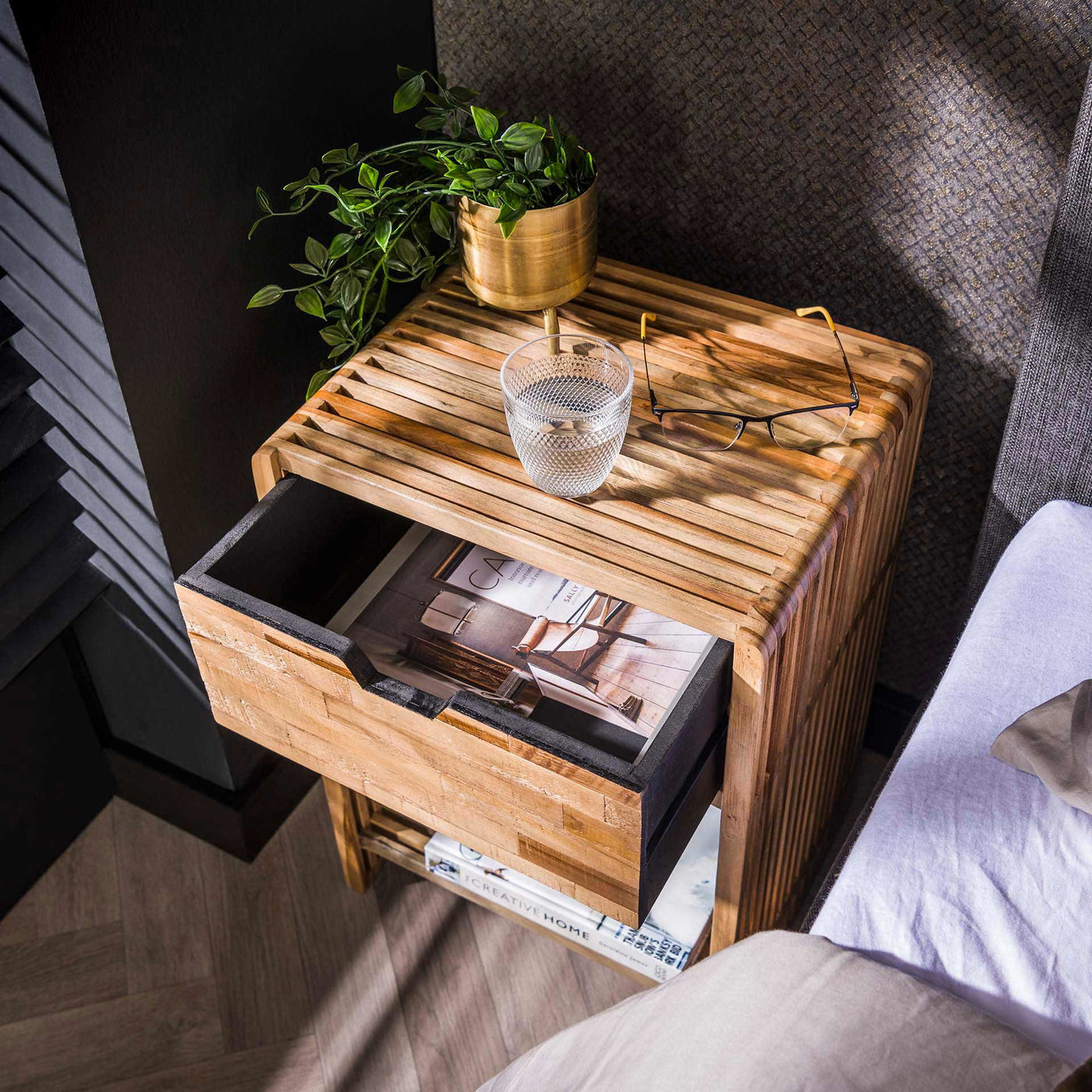 Nachtkastje Rib 1 Lade Verweerd Teakhout - Giga Meubel