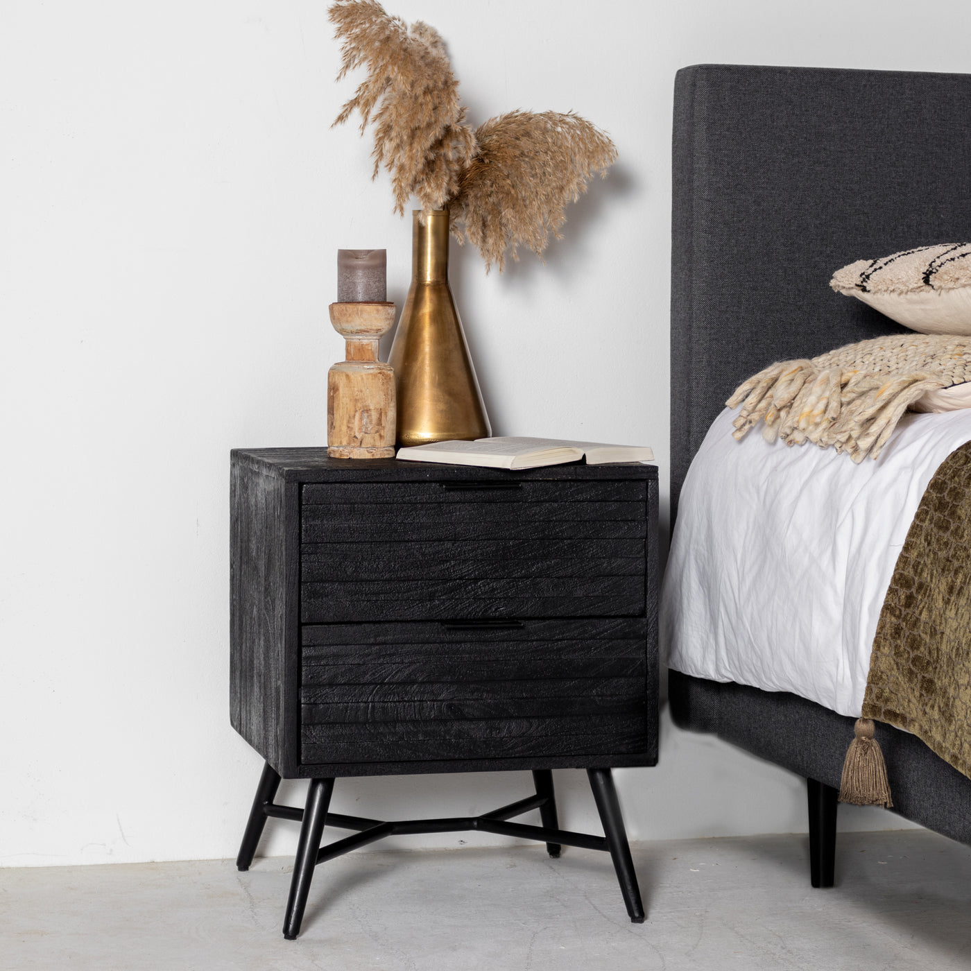Giga Meubel - Nachtkastje Zwart - Metaal & Hout - Nachtkastje Fleur