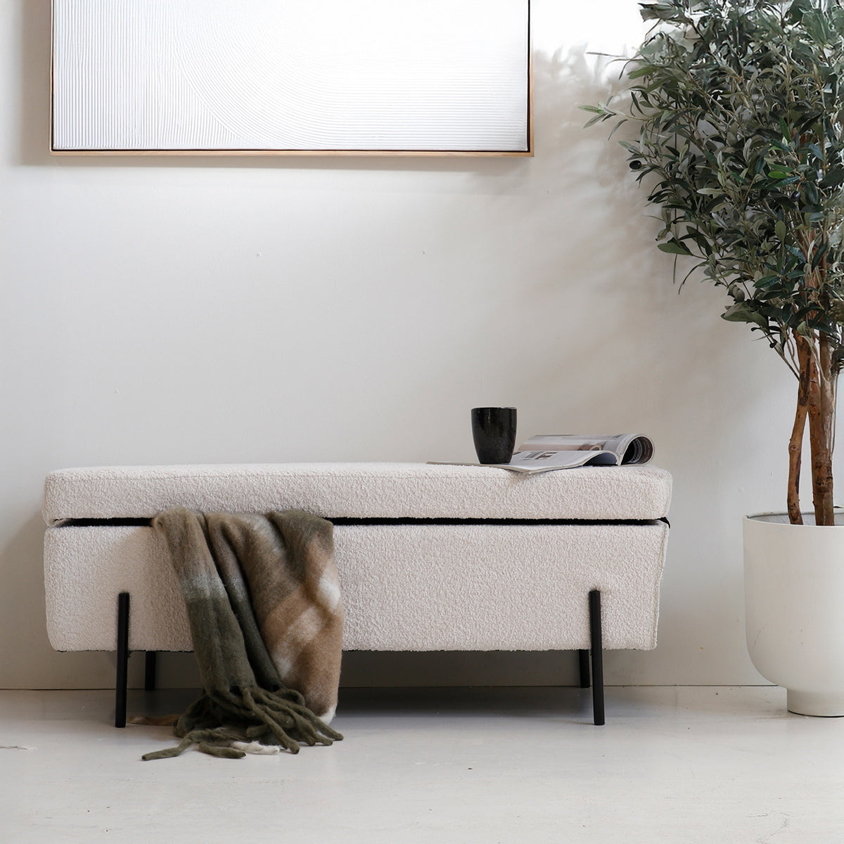 Opbergbank Jari Beige Bouclé 110cm - Giga Meubel