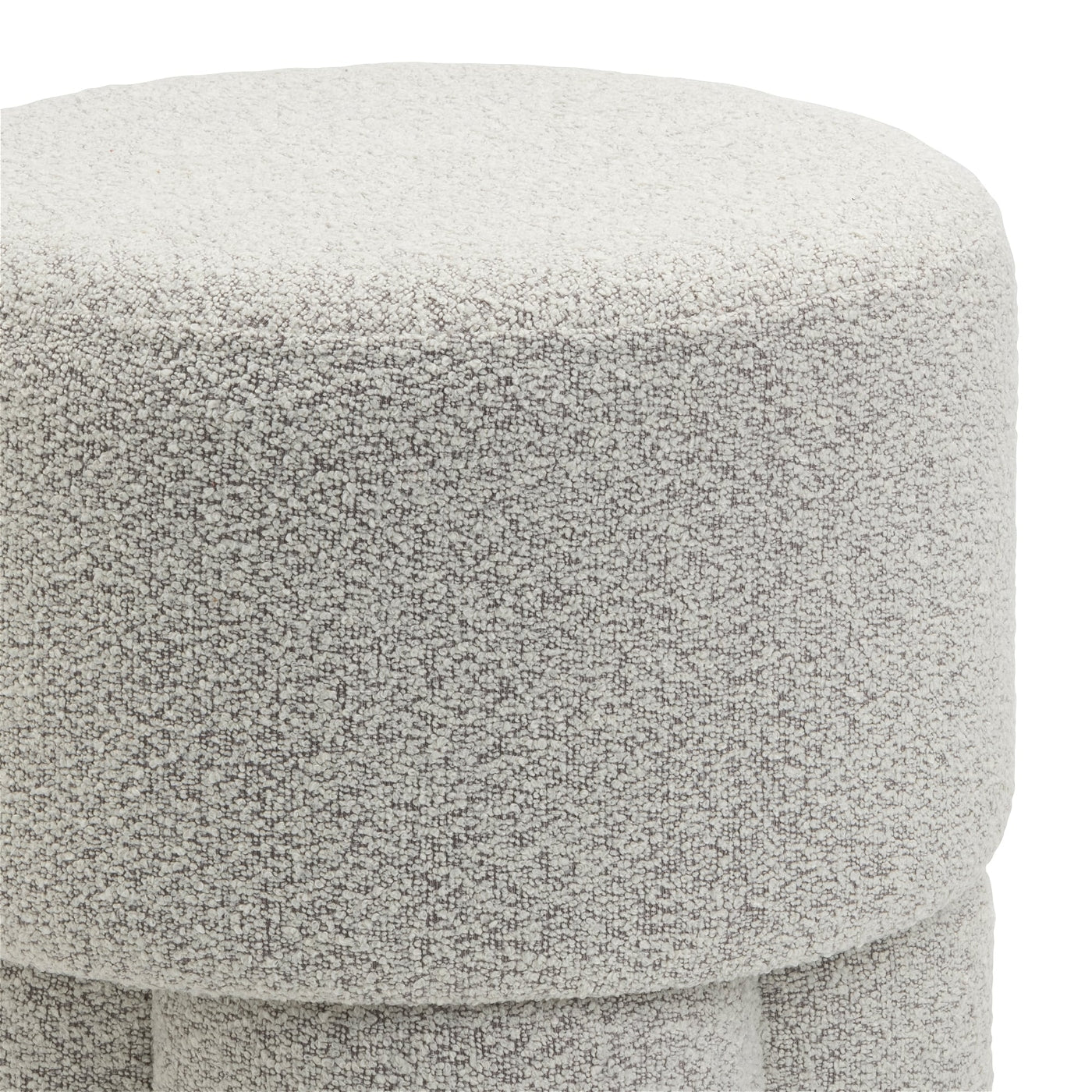 Materiaal: Deze poef is vervaardigd uit Bouclé, een luxe en zachte stof die bekend staat om zijn duurzaamheid en comfort. Het Bouclé materiaal zorgt voor een aangename zitervaring en voegt een vleugje elegantie toe aan je interieur.