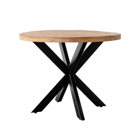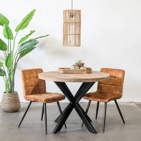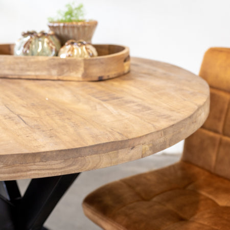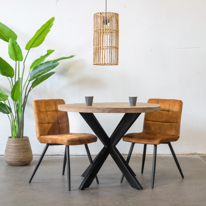 - Dit robuuste frame en de authentieke ronde vorm maakt de tafel tot een stoer en praktische eettafel.