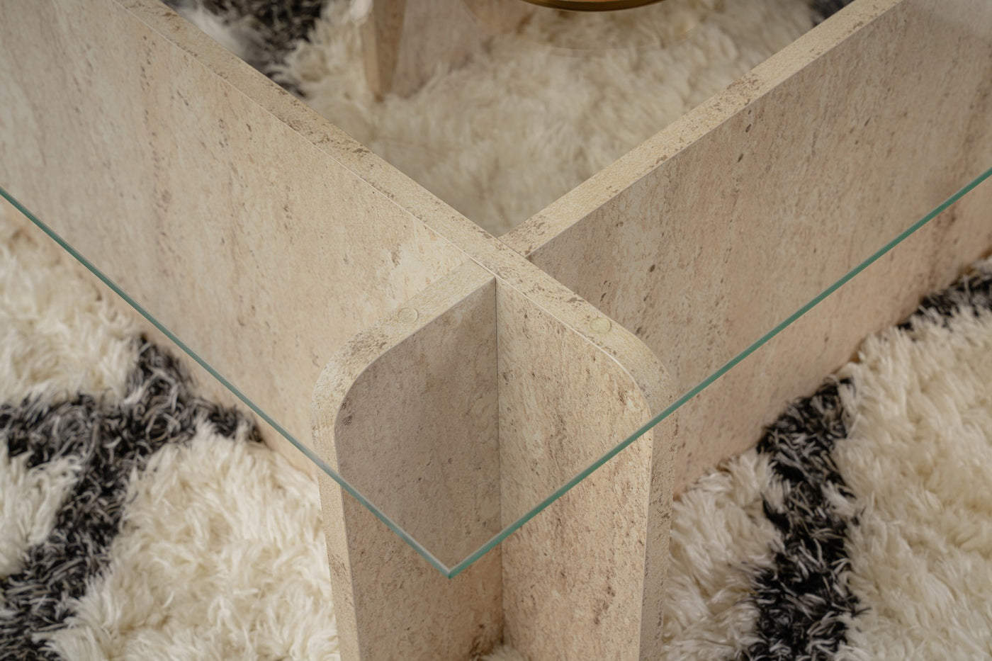 Salontafel Flavio Glas/Travertinlook