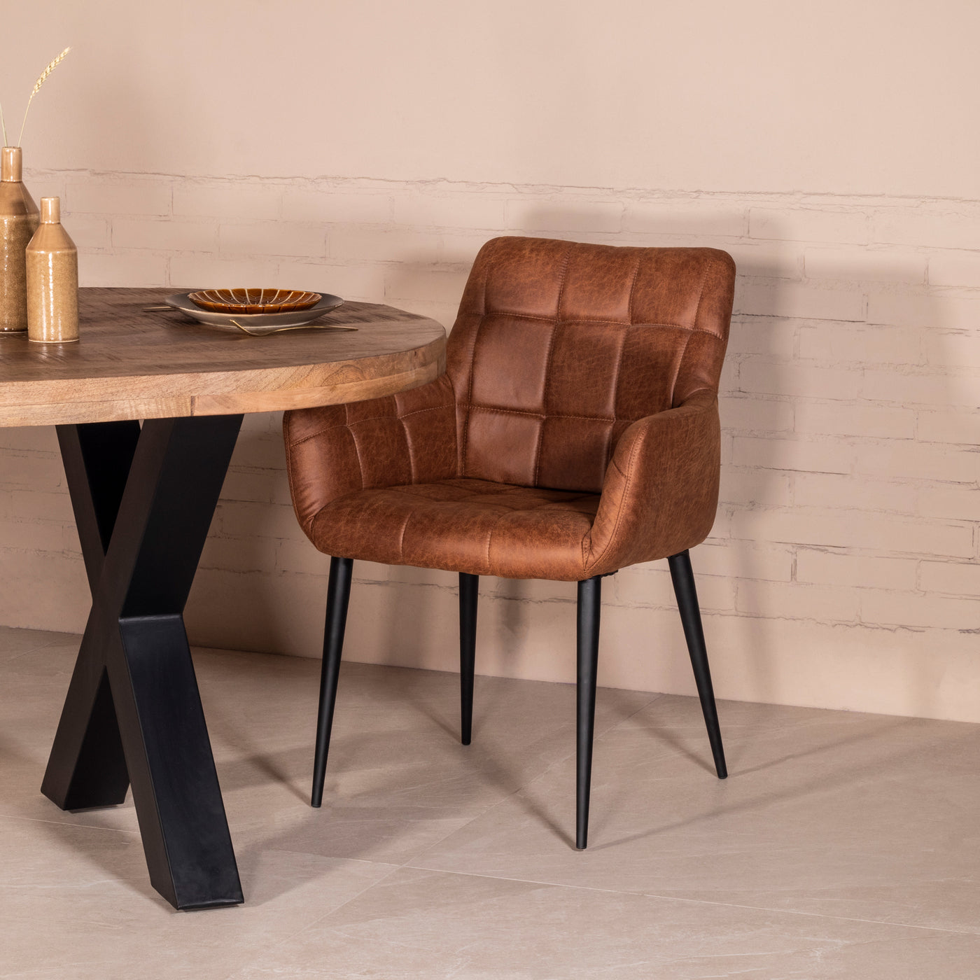 Giga Meubel - Stoel Cognac - 58x62x83cm - Zwart - Jade