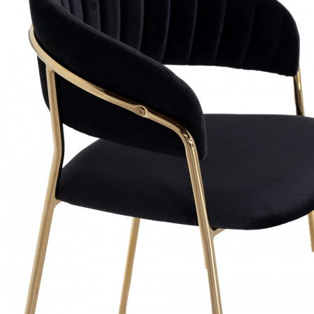 Giga Meubel - Stoel Velvet Zwart - Goud Metaal - 57x52x75 - Turin Luxe - Set van 2