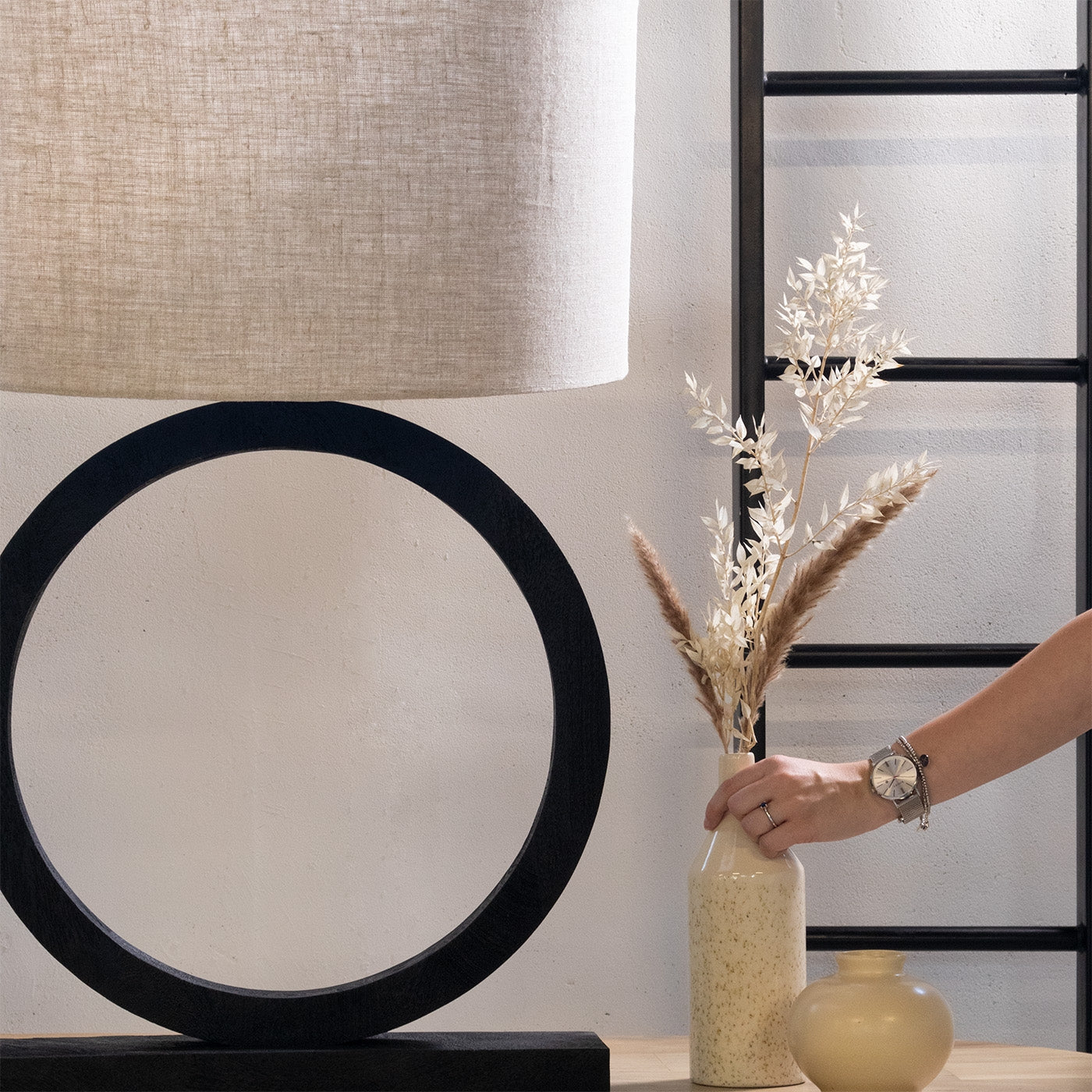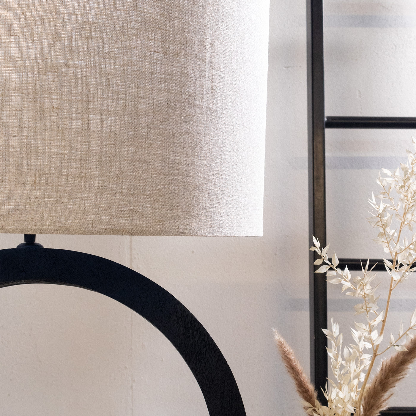Materiaal: De Tafellamp Nils is vervaardigd uit een combinatie van hout en linnen. Deze natuurlijke materialen zorgen voor een warme en sfeervolle uitstraling in elke kamer.