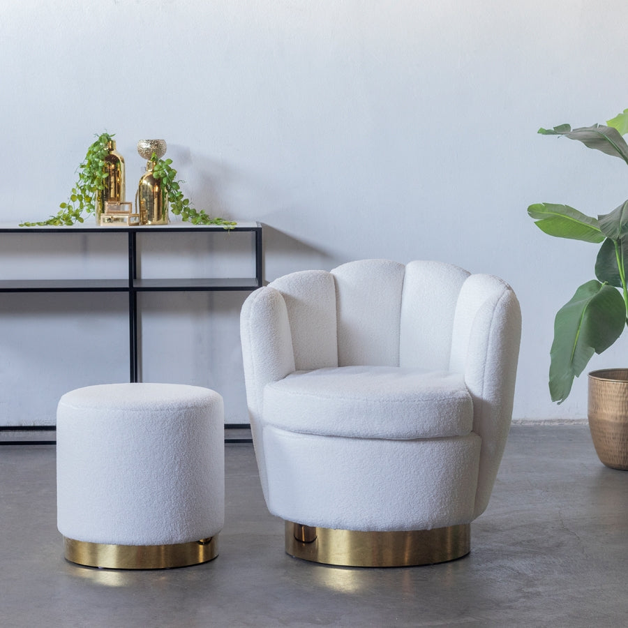 - De witte poef gecombineerd met het gouden onderstel zorgt voor een chique touch binnen jouw interieur.