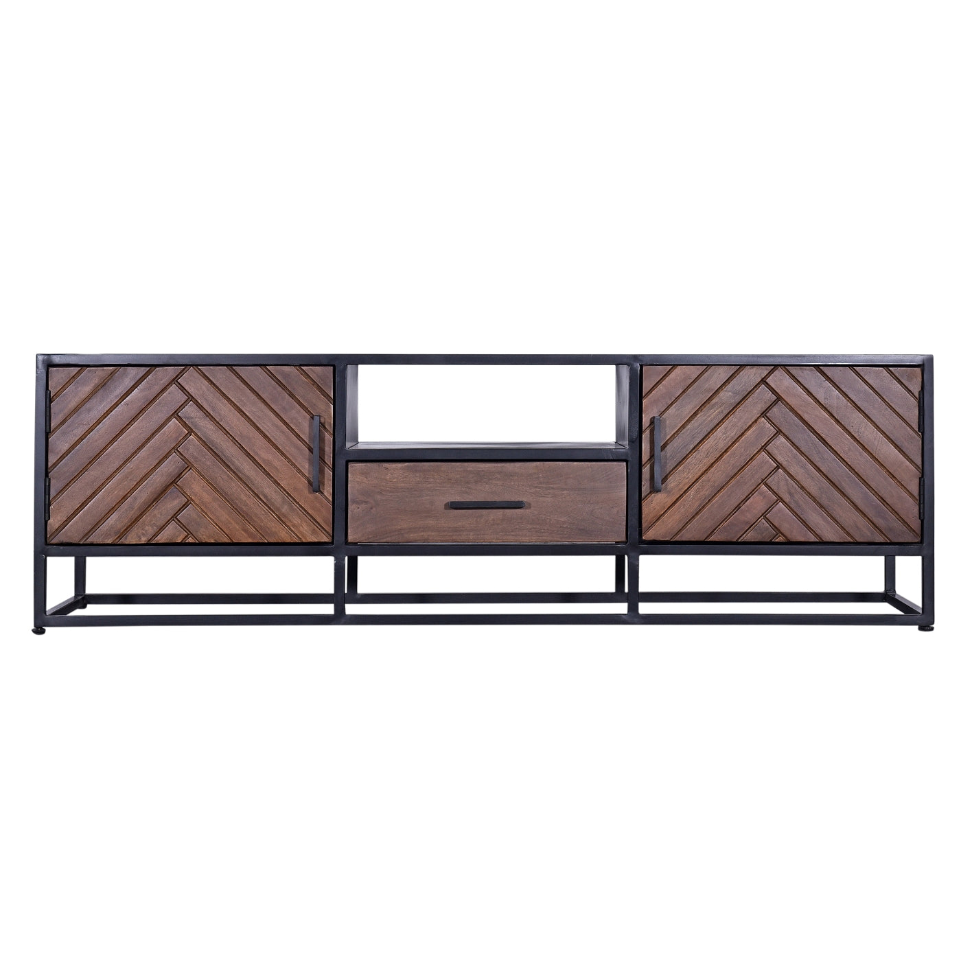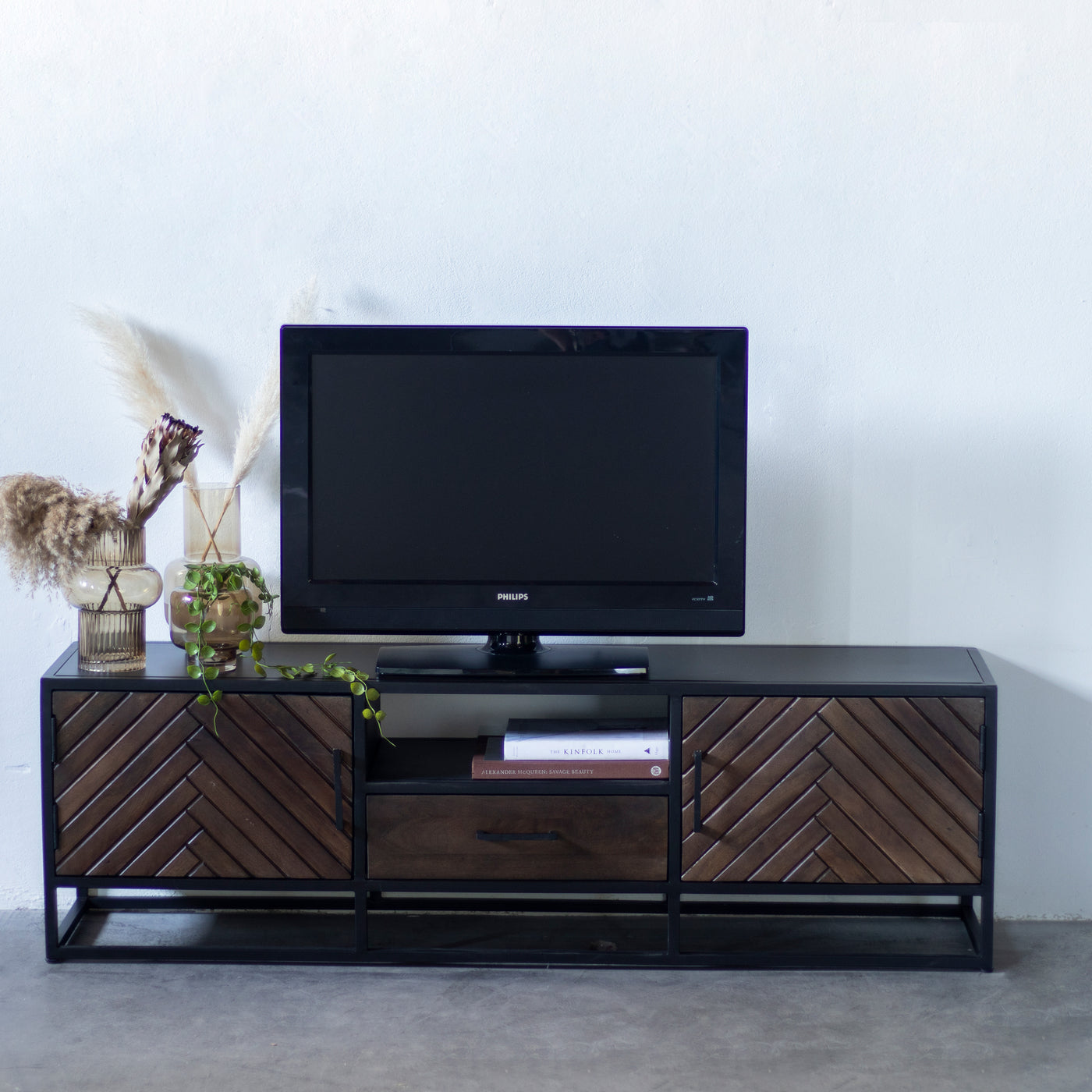 Tv-meubel Isa Bruin Visgraat 165cm Mangohout - Giga Meubel
