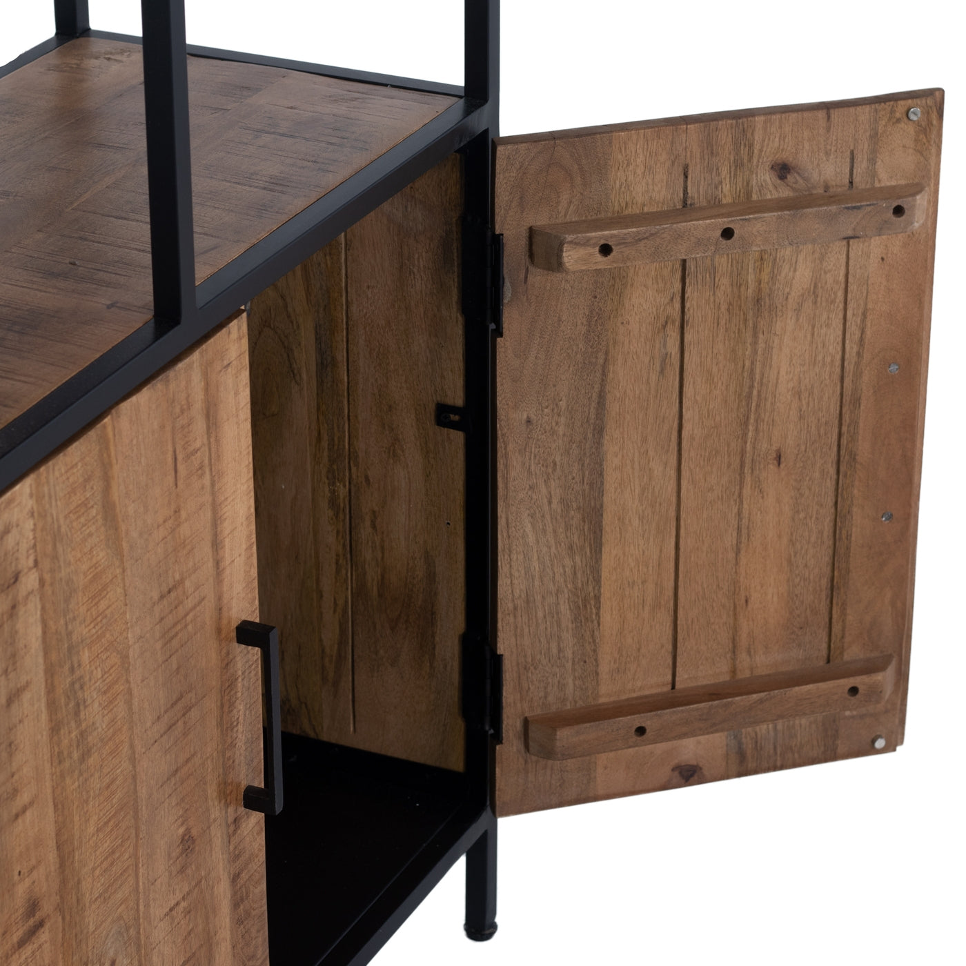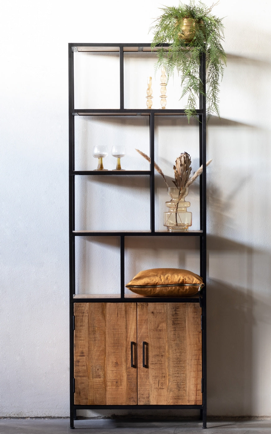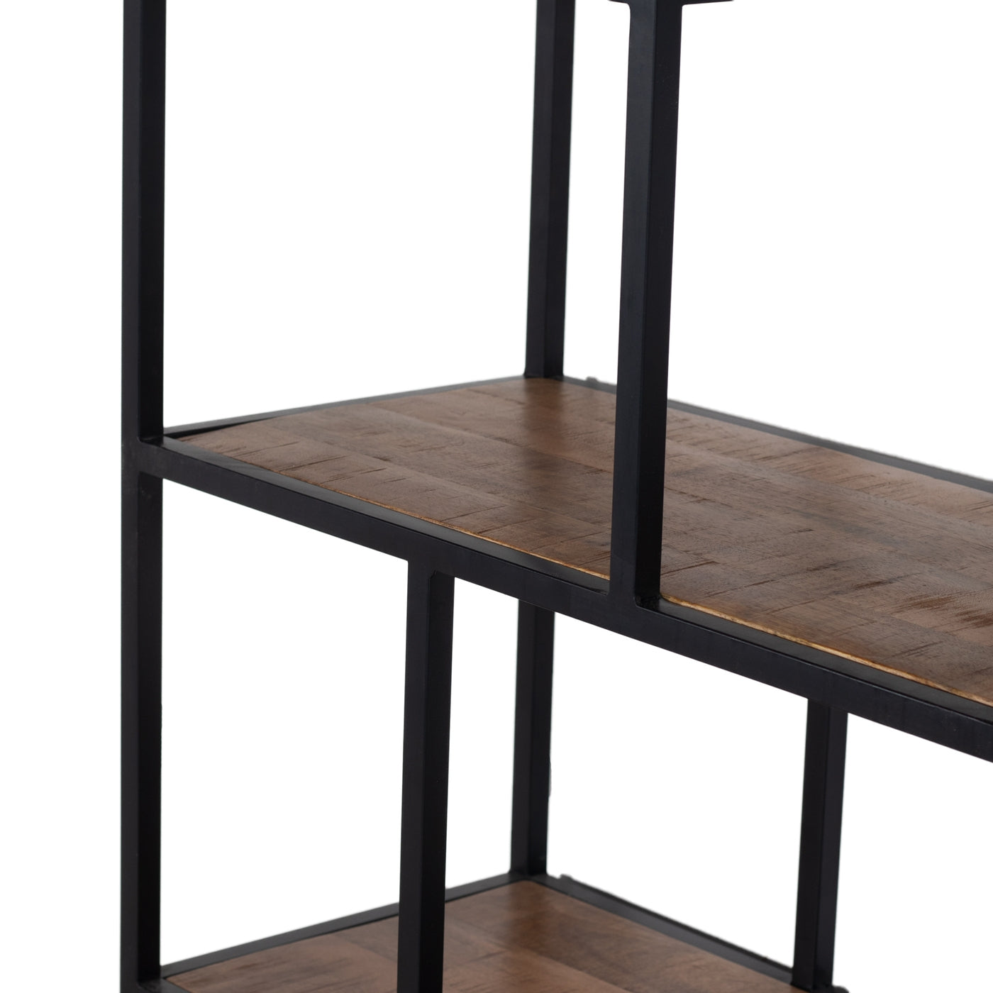 Materiaal: De Vakkenkast Brooke is vervaardigd uit een combinatie van ijzer en mangohout, wat zorgt voor een stevige en duurzame constructie.