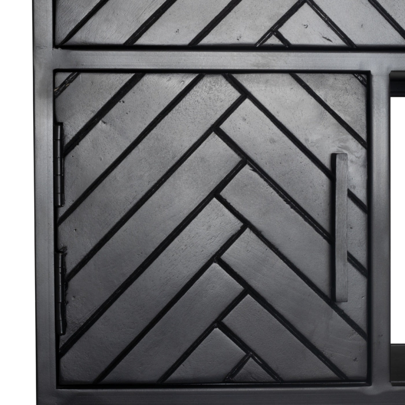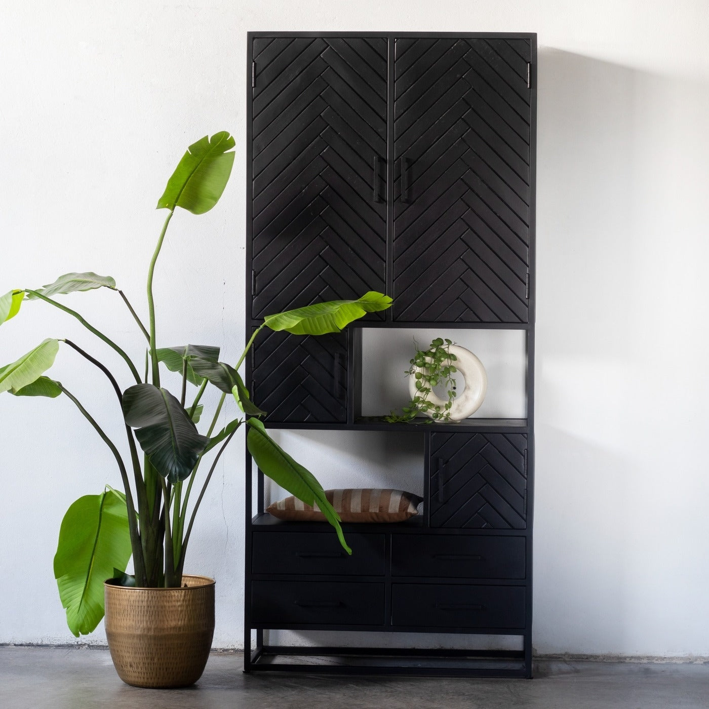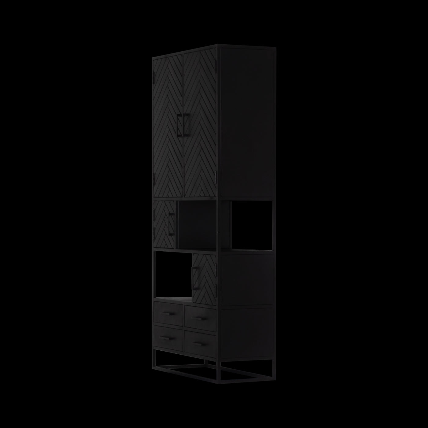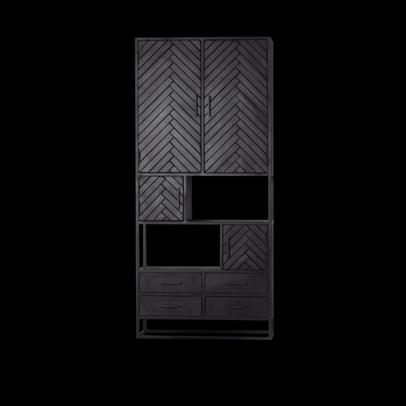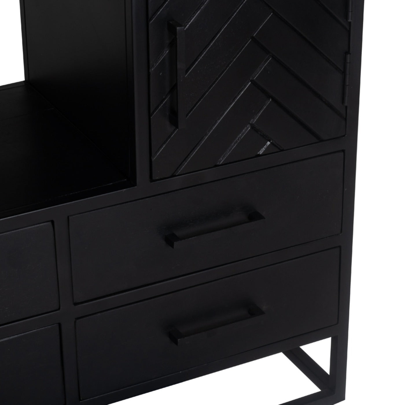 Giga Meubel - Vakkenkast Zwart Mangohout - Visgraat - Kast Isa Klein