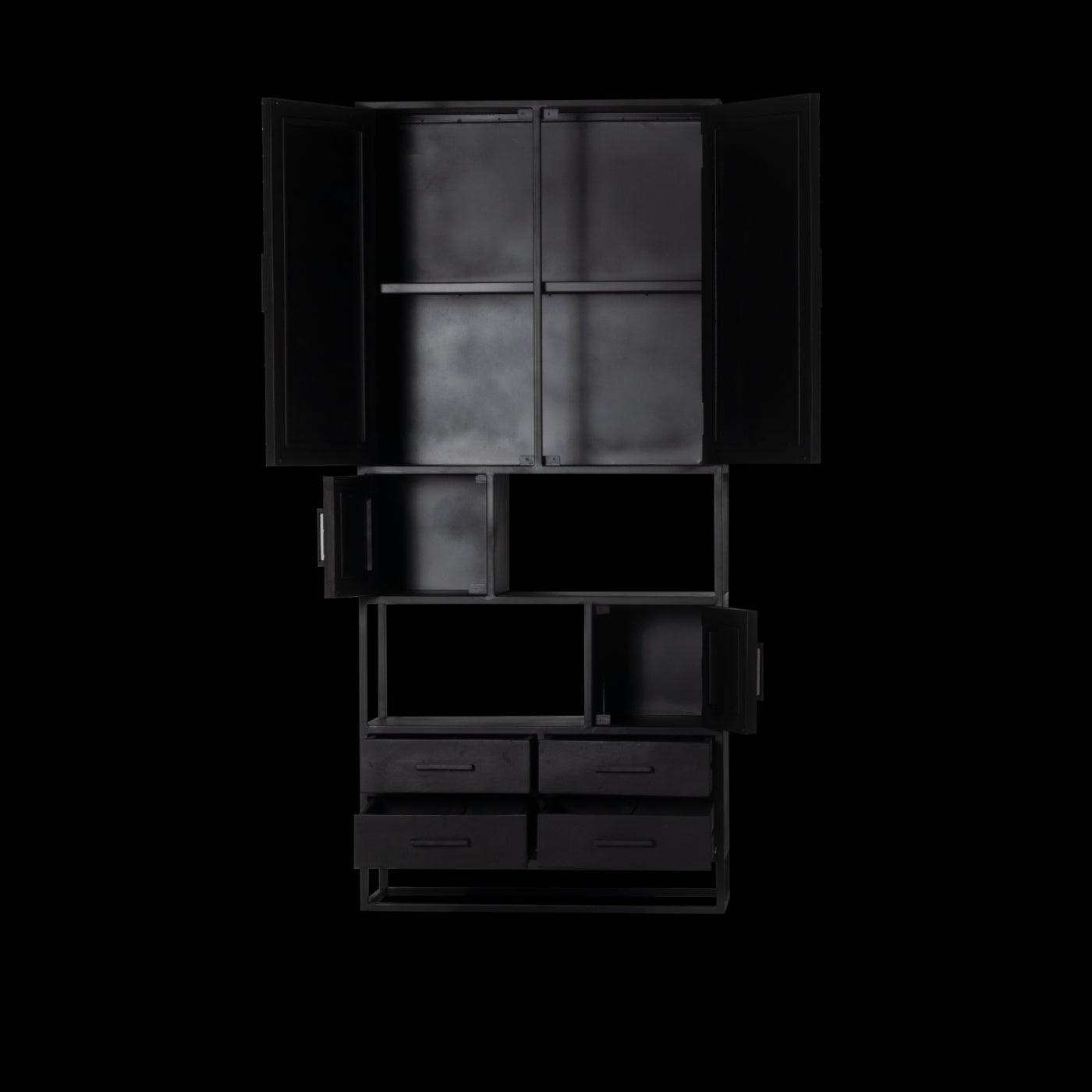 Ontdek de charme van de industriële stijl met de Vakkenkast Isa Zwart Visgraat Klein. Een perfecte mix van mangohout en metaal geeft deze kast een uniek karakter. De zwarte kleur voegt een moderne touch toe, terwijl de kwaliteit en het praktische ontwerp ervoor zorgen dat dit meubelstuk niet alleen een eyecatcher is, maar ook een functionele toevoeging aan je interieur. Met voldoende opbergruimte dankzij de vier lades en zes vakken, is deze kast ideaal voor het organiseren van je spullen.