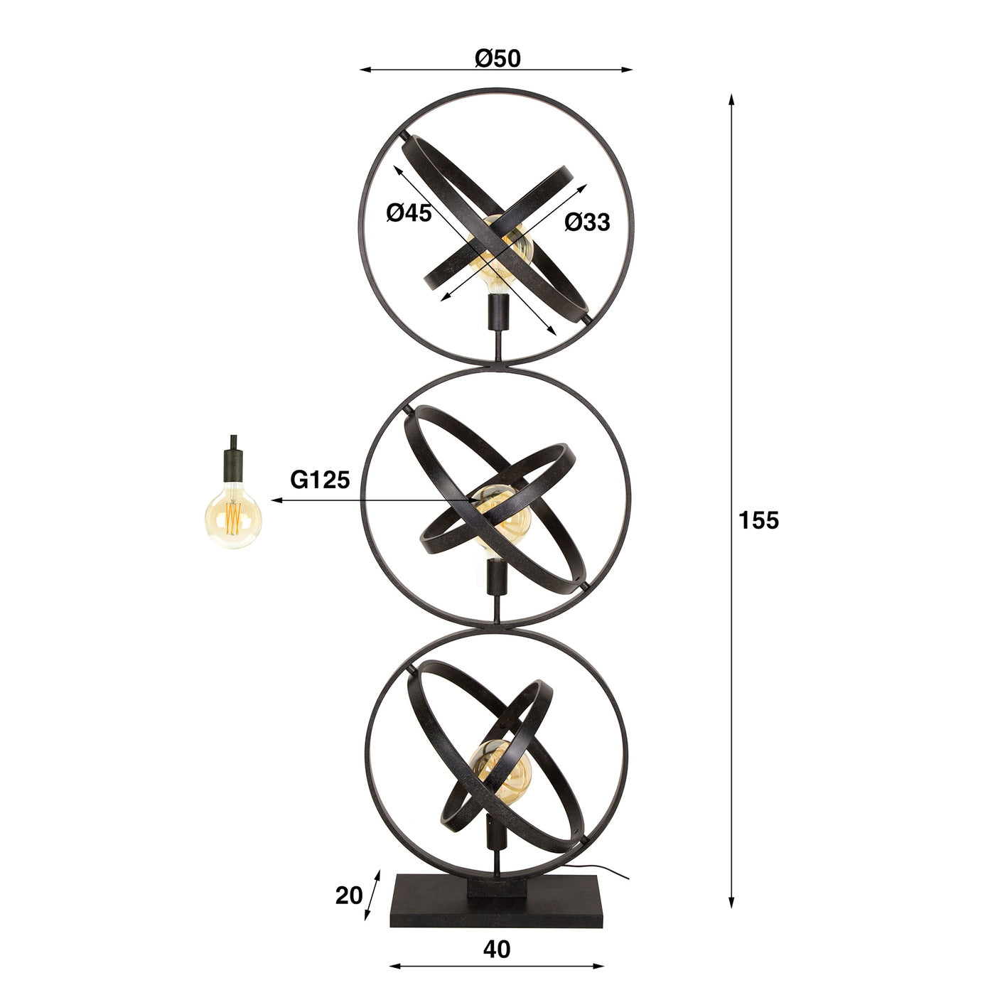 Giga Meubel - Vloerlamp Zwart Metaal - 3-Lichts - 50x45x155cm