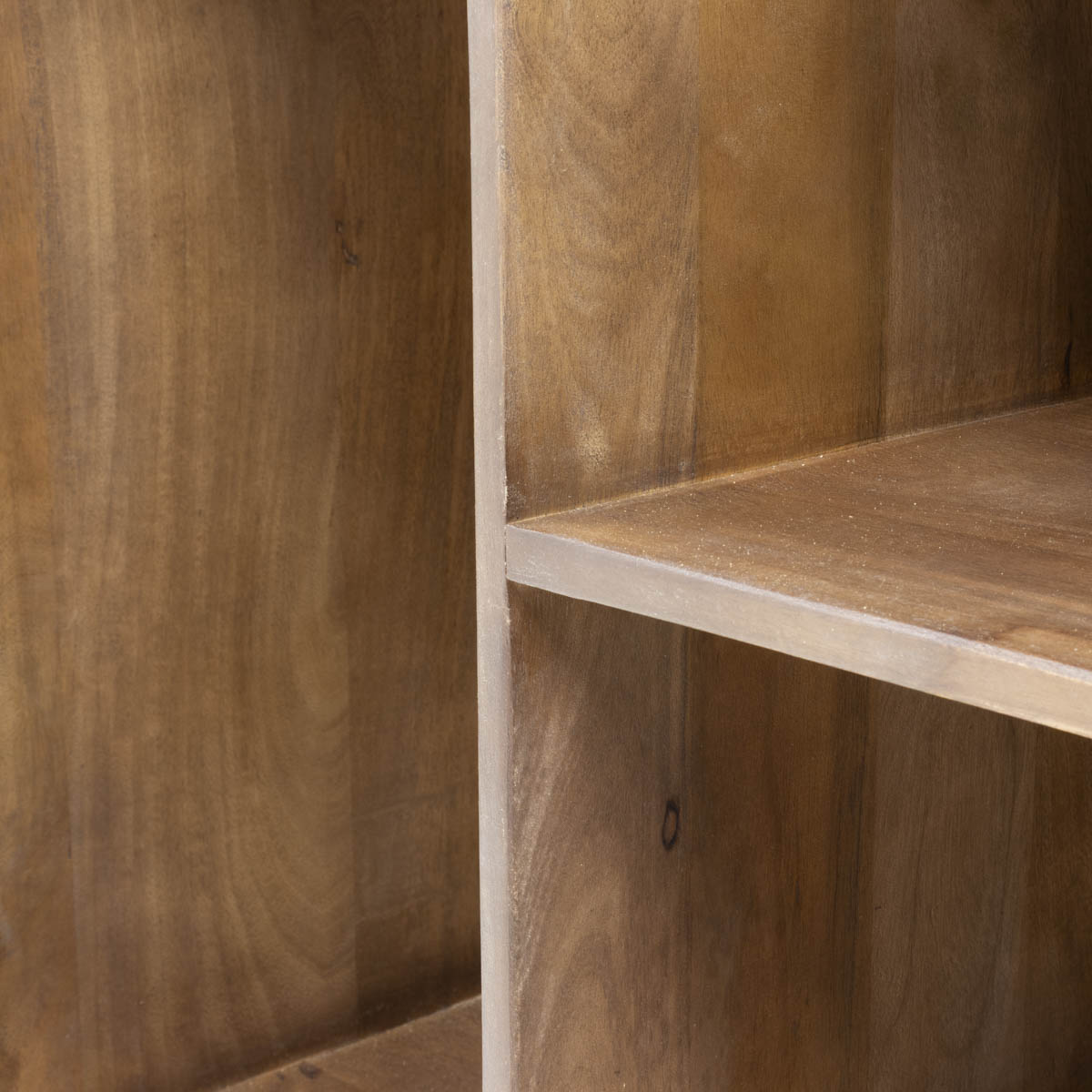 Materiaal: De Wandkast Finn is gemaakt van hoogwaardig mangohout, een duurzaam materiaal dat bekend staat om zijn stevigheid en unieke houtnerfpatronen. Mangohout is een milieuvriendelijke keuze, omdat het afkomstig is van bomen die hun vruchtbare jaren hebben gehad.