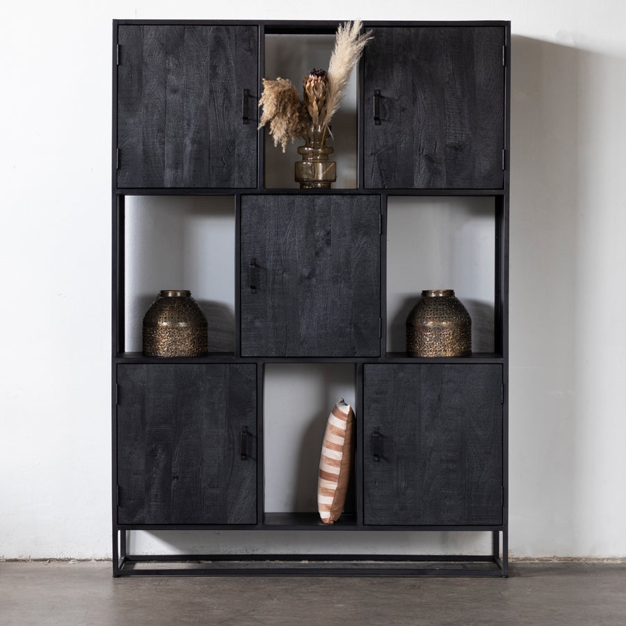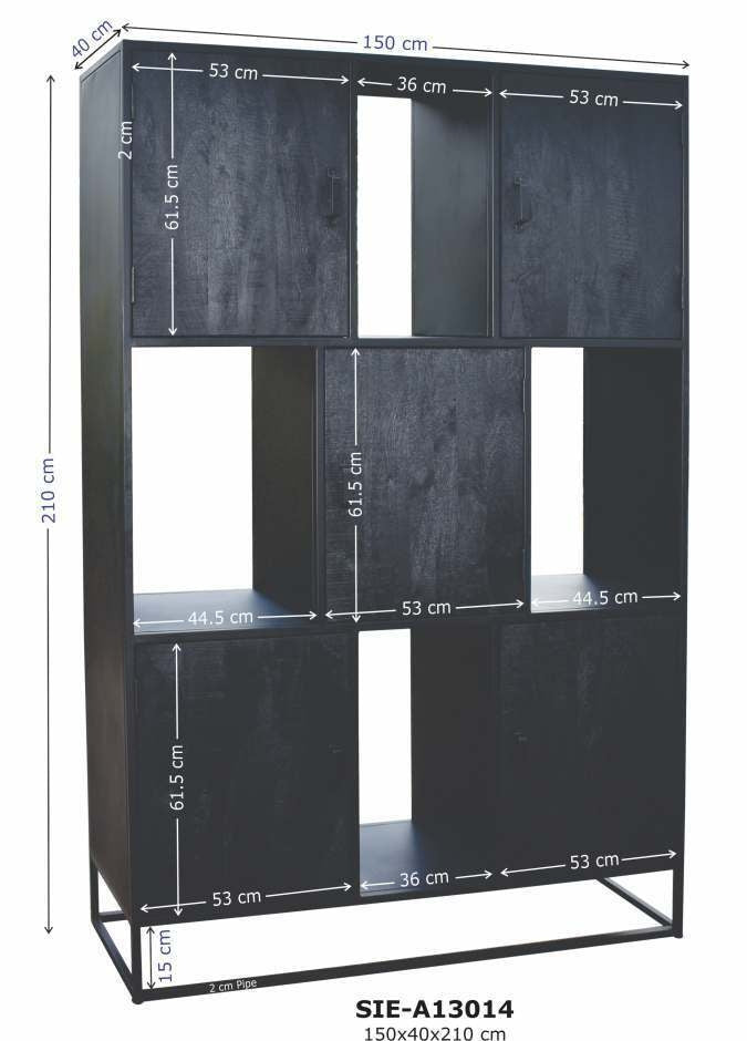 - De kast is vervaardigd uit zwart ijzer en mango hout.
