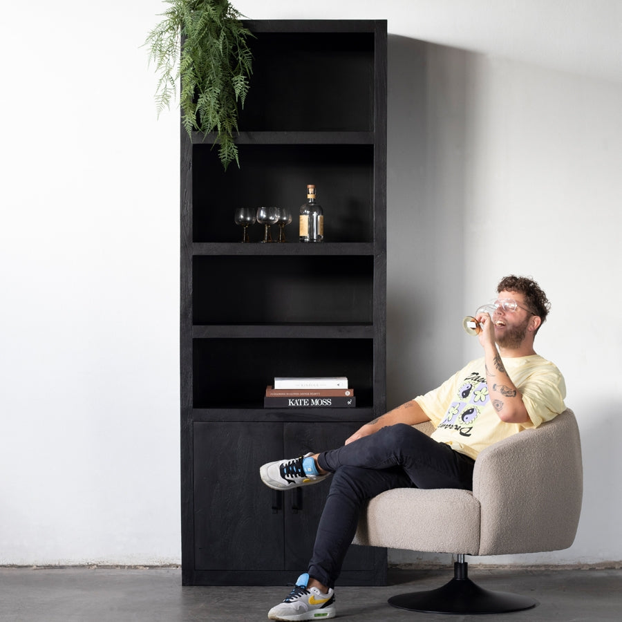Giga Meubel - Wandkast Zwart - Mangohout - 80x220cm - Kast Xander