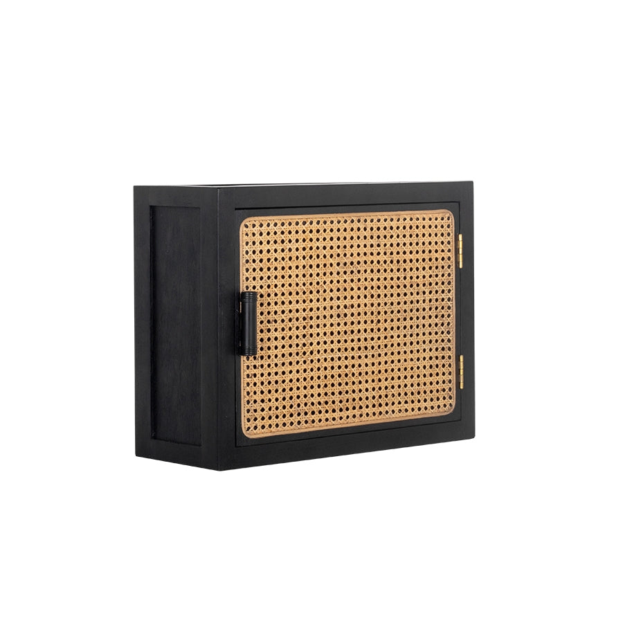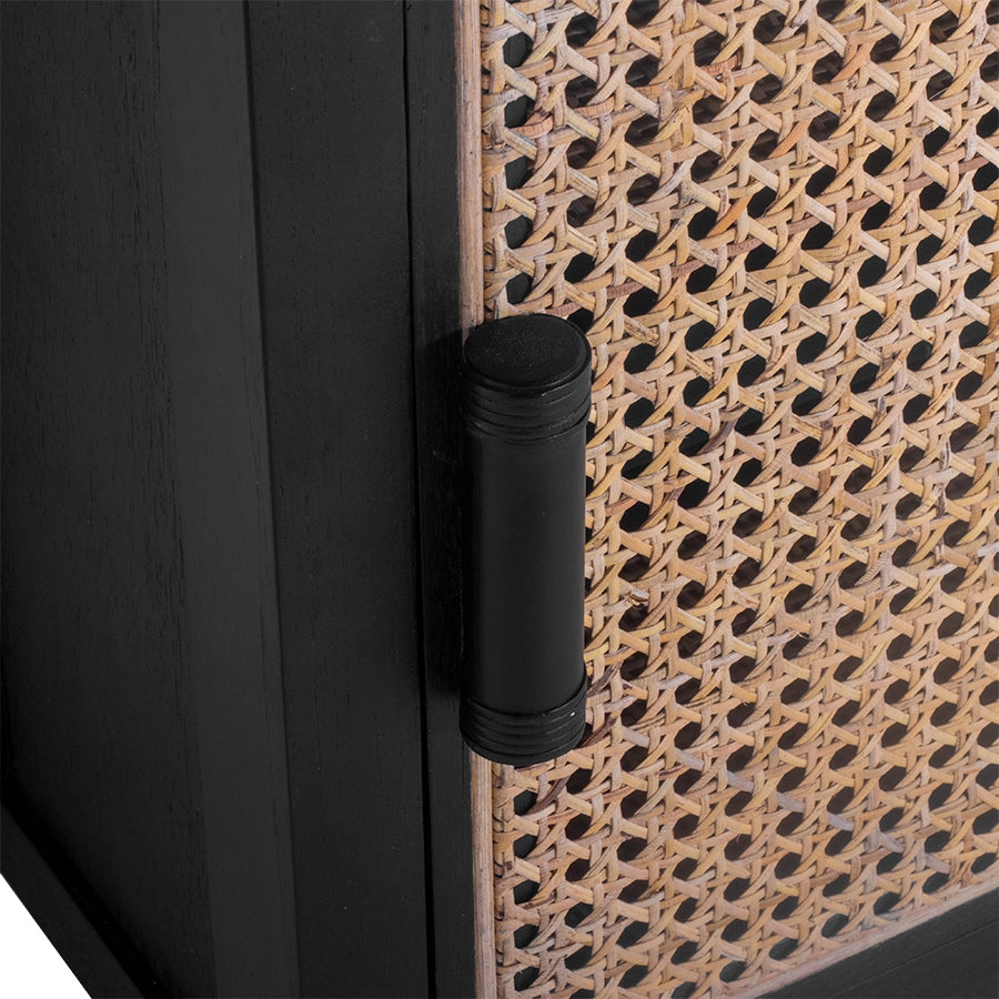 - De rotan afwerking aan de kastdeuren geeft dit wandkastje een mooie retro look.