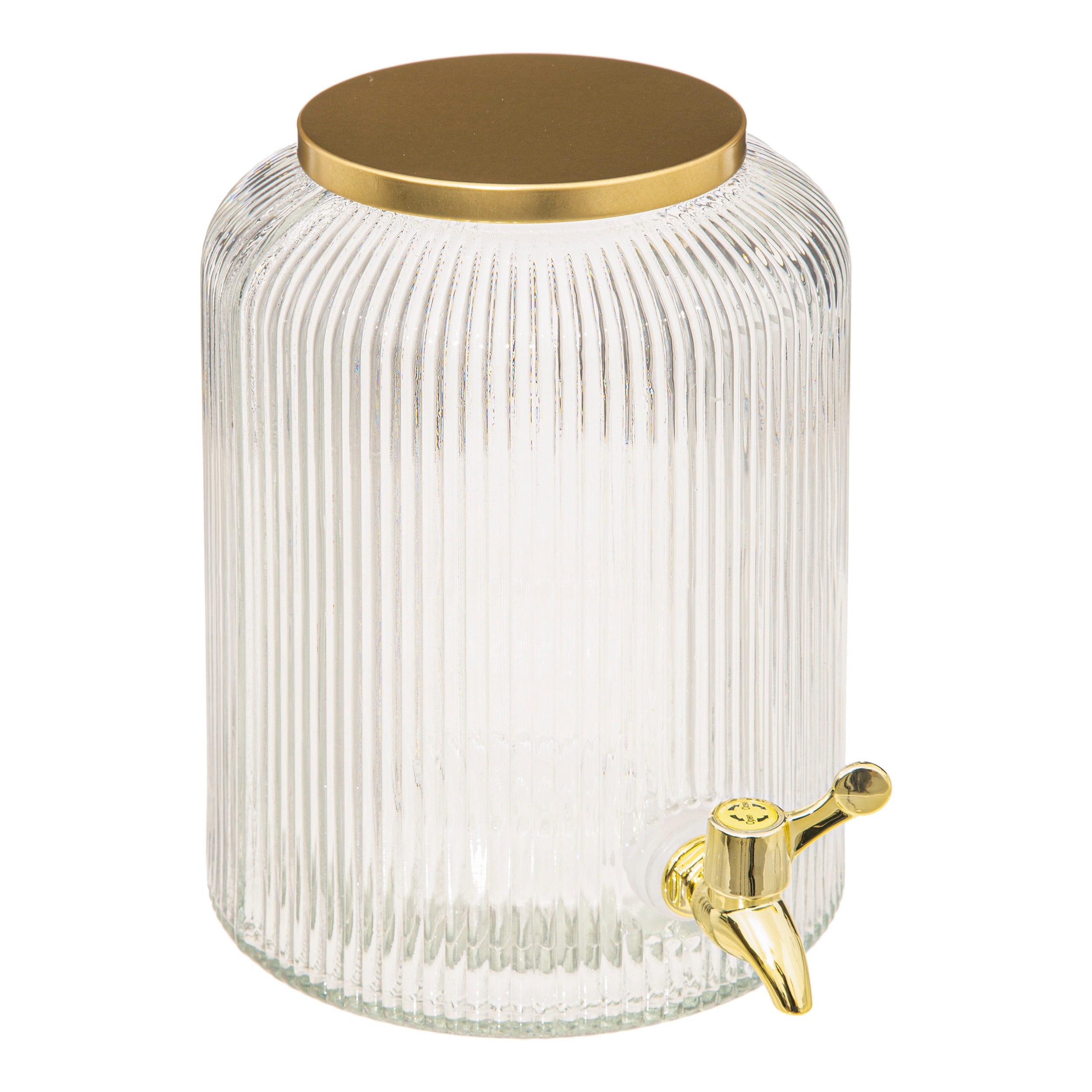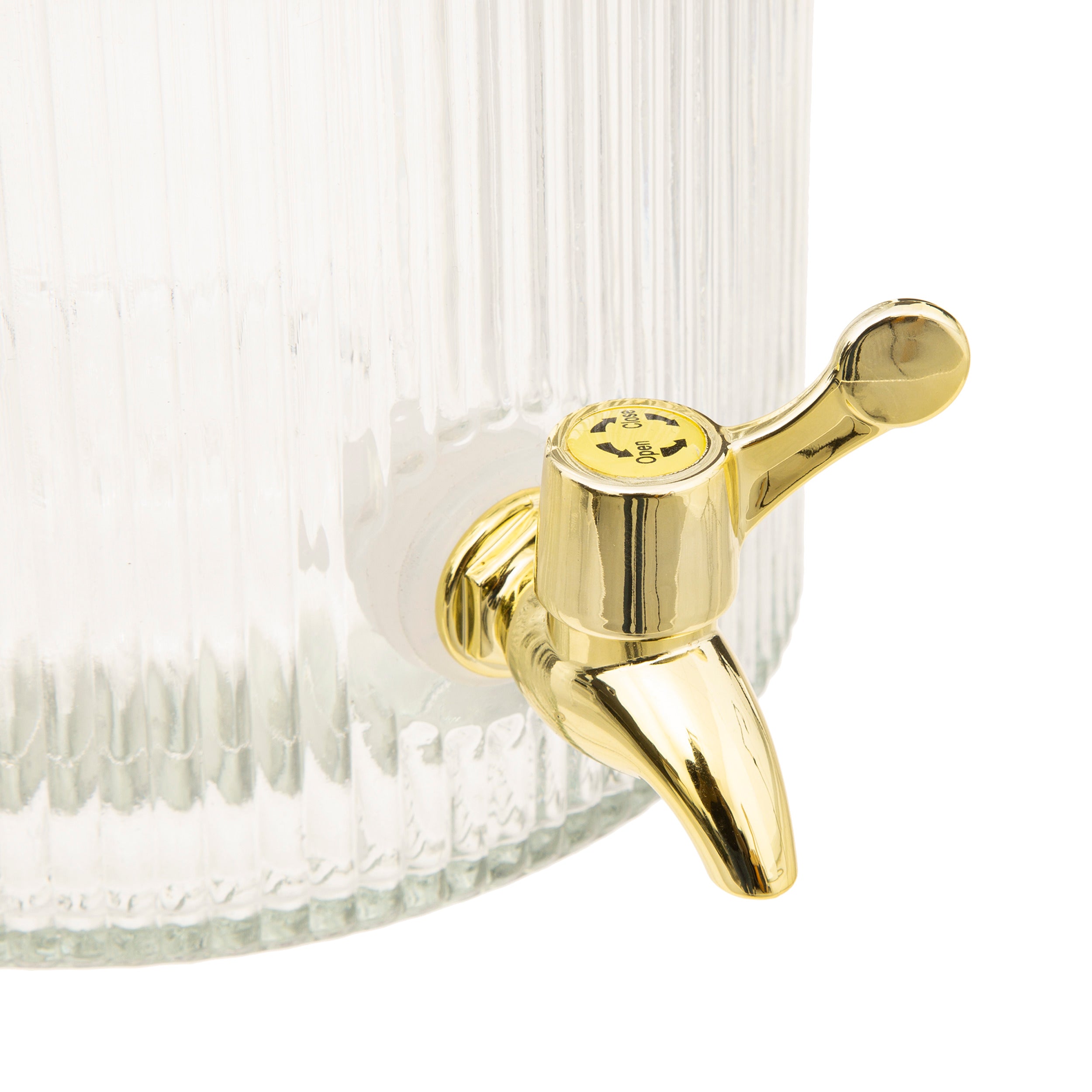 Deze elegante glazen dispenser met tapkraan voegt een vleugje luxe toe aan elke bijeenkomst of feestelijke gelegenheid. Met zijn royale capaciteit van 5 liter is deze goudkleurige dispenser perfect voor het serveren van verfrissende drankjes, cocktails of zelfs water met stijl en gemak.