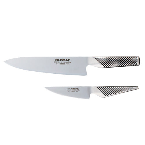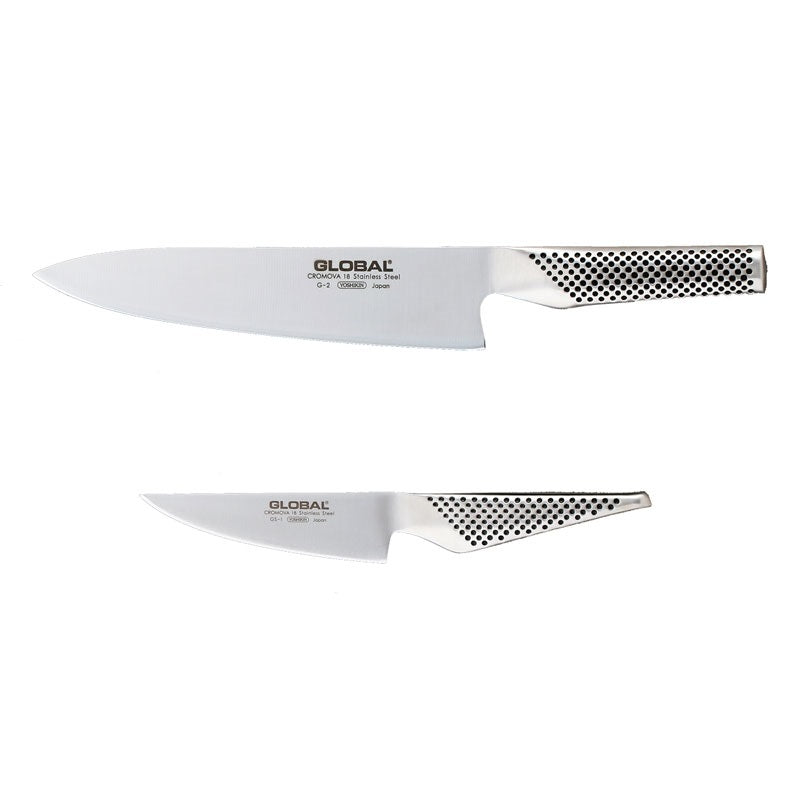 Global is een vooraanstaand merk met prachtige Japanse messen. De messen zijn ontworpen door Komin Yamada en vallen vooral door het revolutionaire en herkenbare design van de handgreep zeer op. De messen zijn gemaakt van hoogwaardig Cromova 18 roestvast staal en zijn extra hard. Door de kleine slijphoek behouden deze professionele messen hun scherpte extra lang!