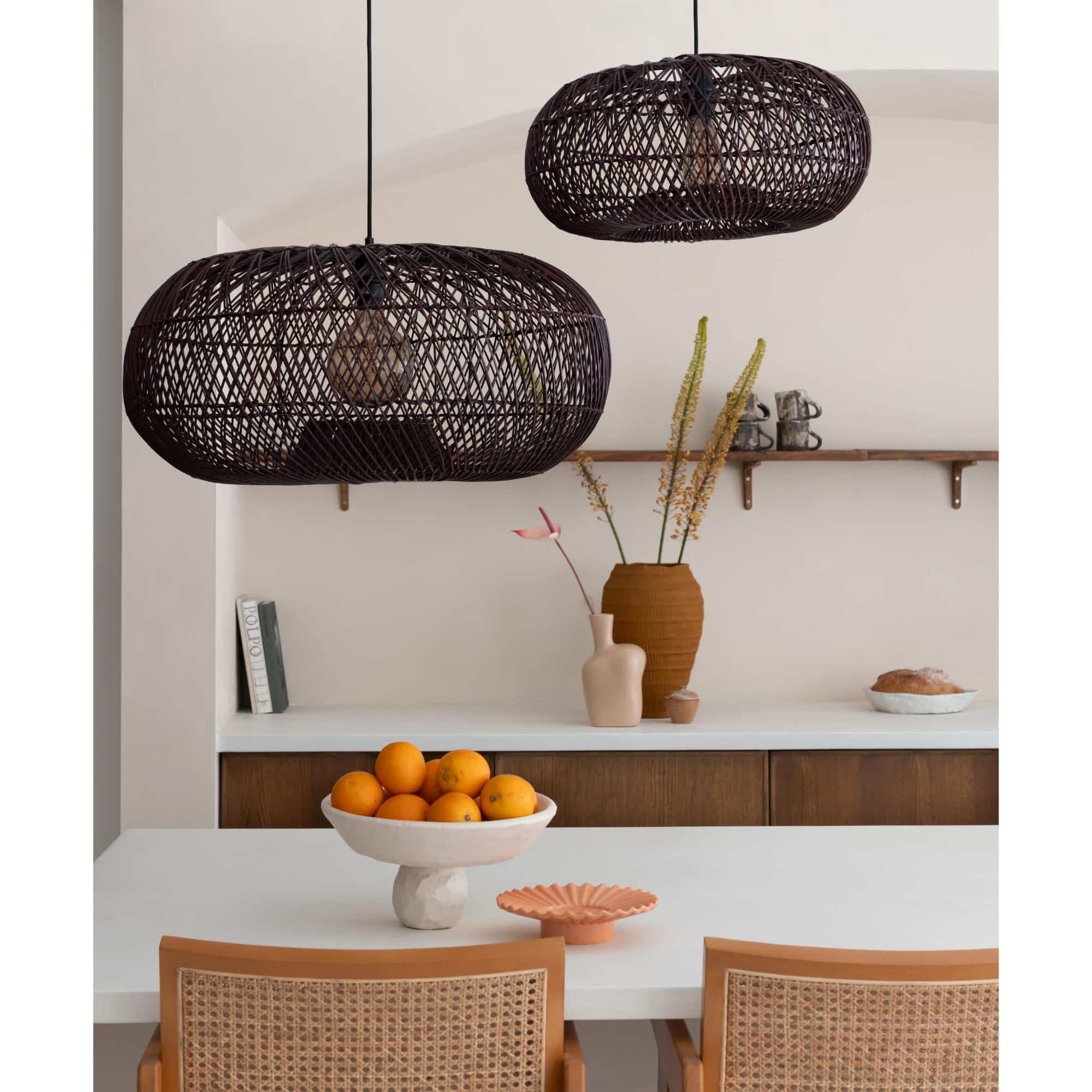 - Stijlvolle plafondlamp gemaakt van rotan in een naturel kleur