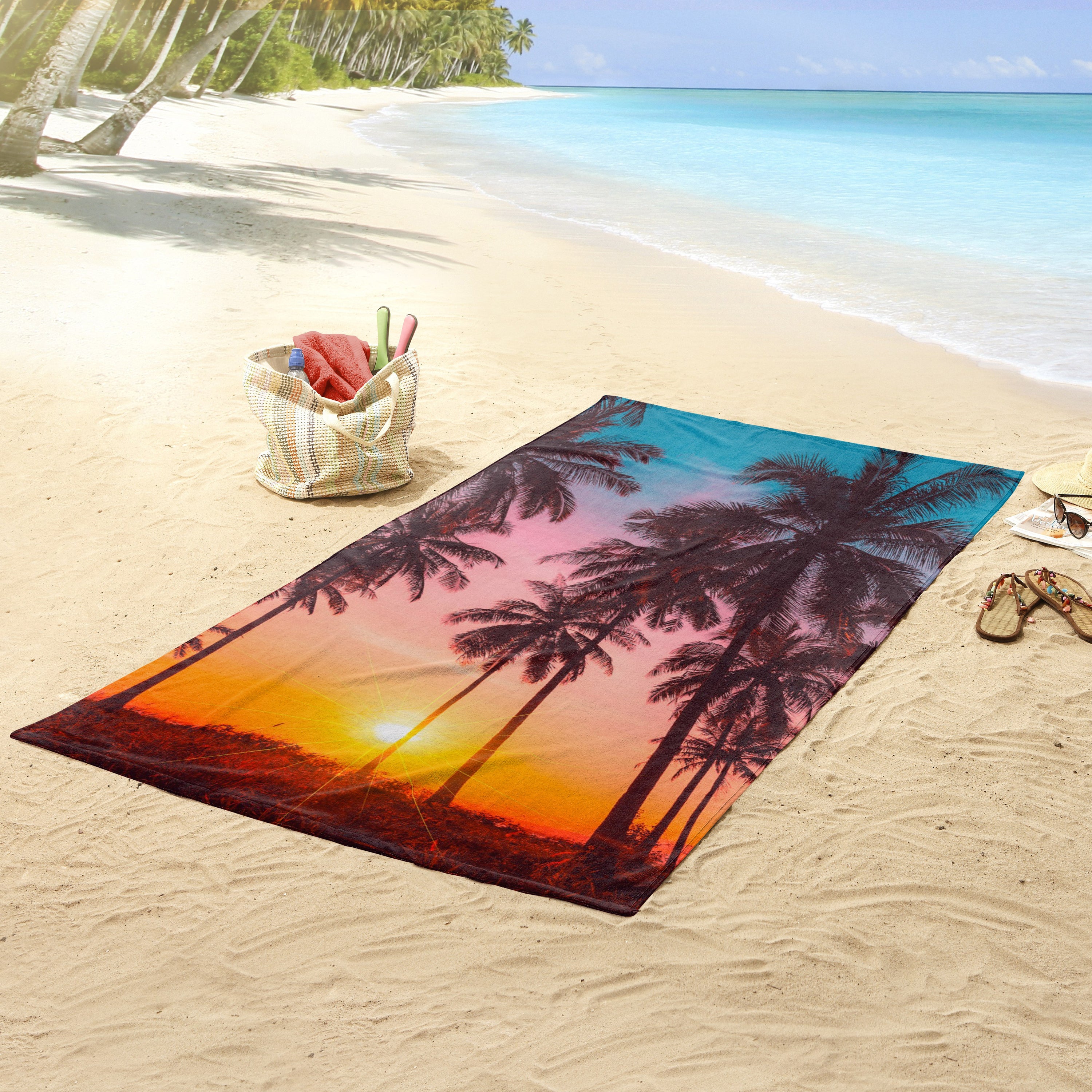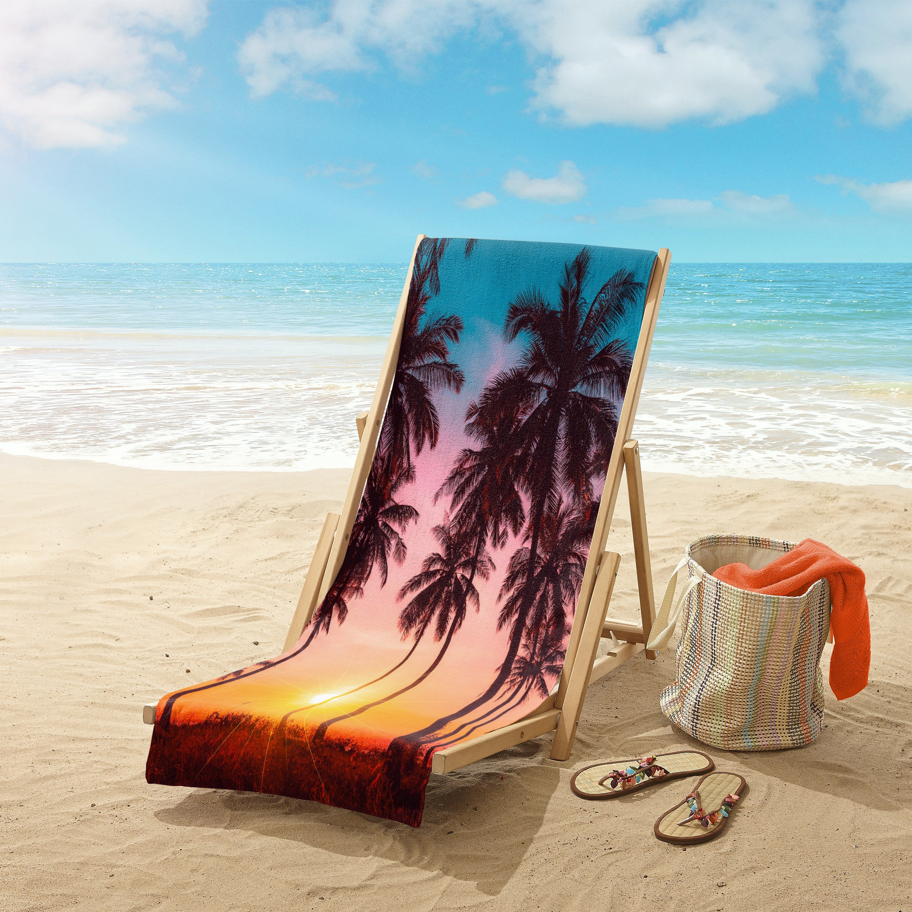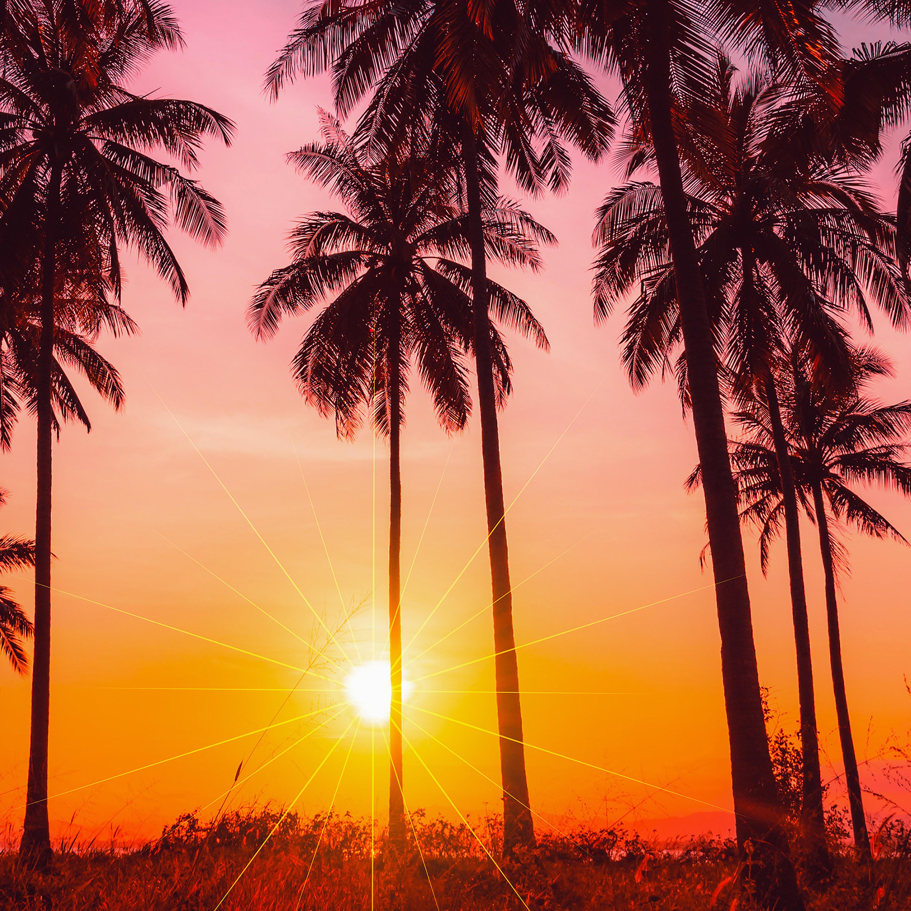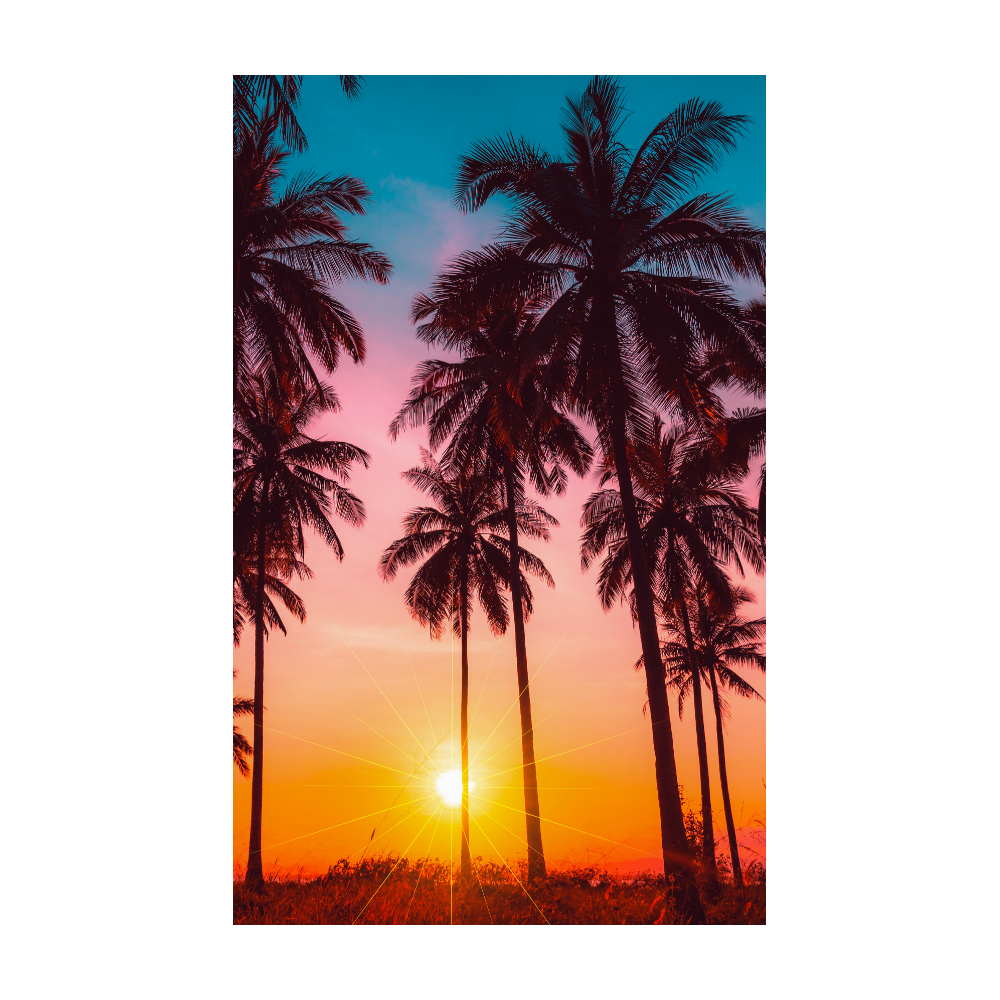 - Palmbomen en de prachtig ondergaande zon zijn te zien op het overtrek