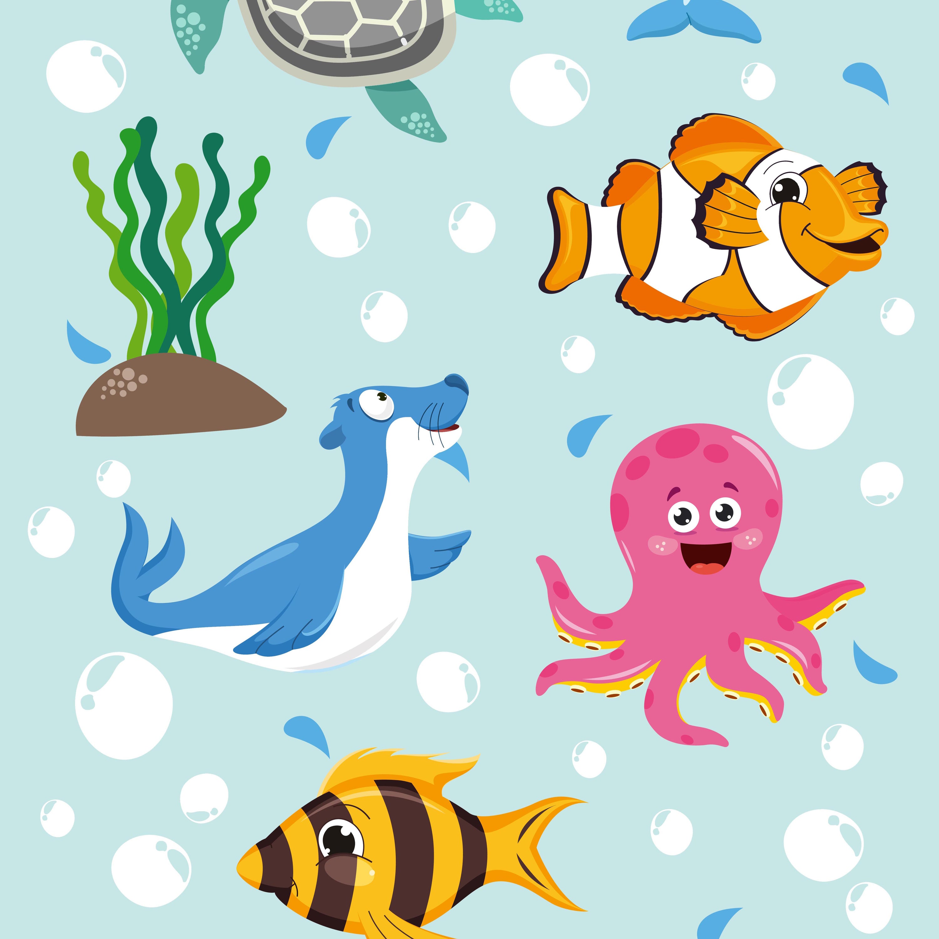 - Met vrolijk dessin van de onderwaterwereld met verschillende dieren
