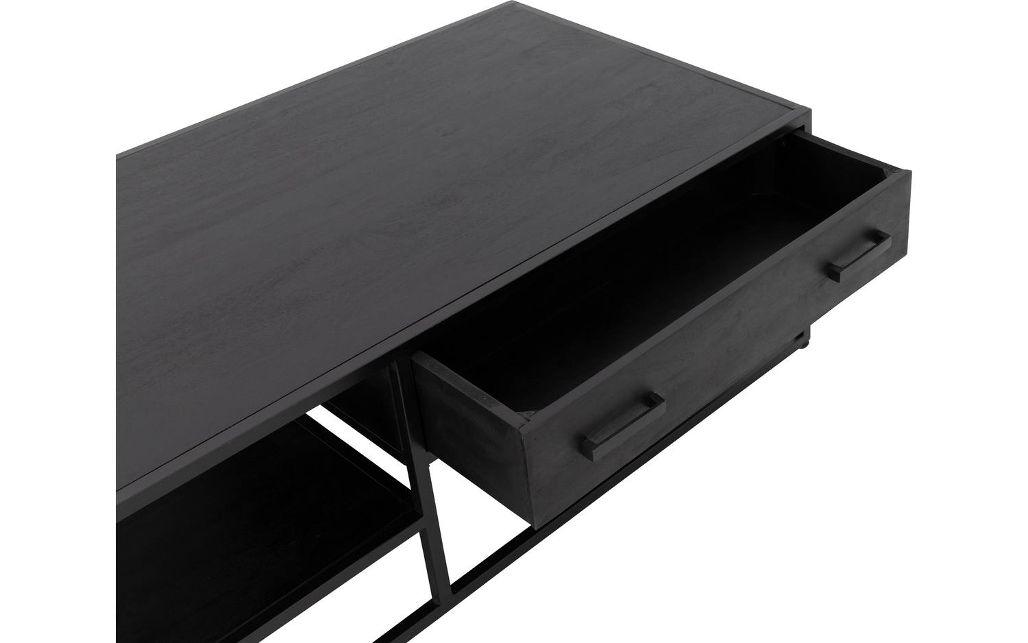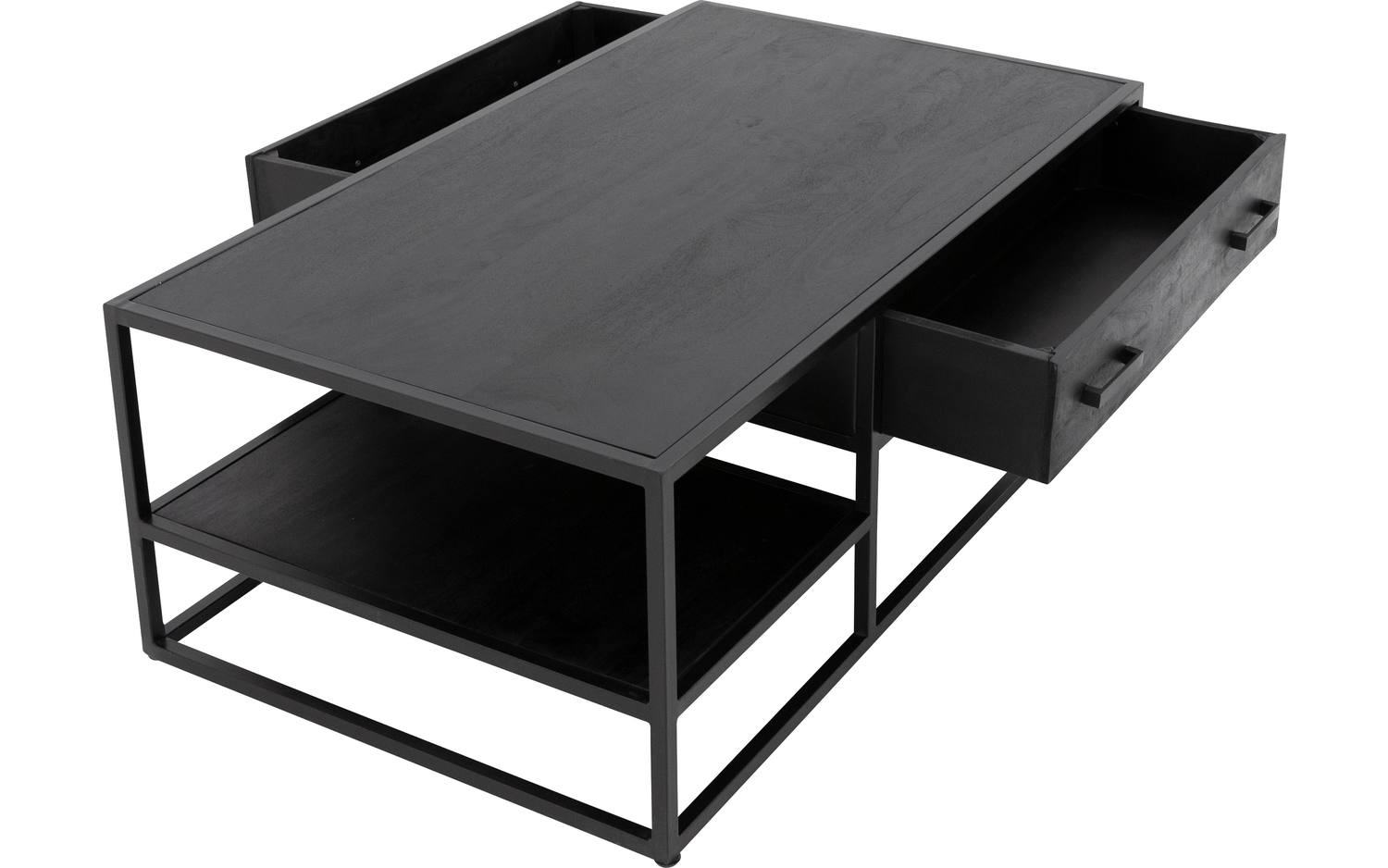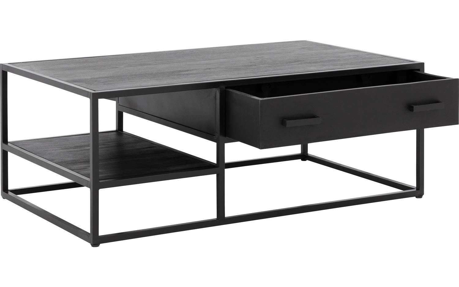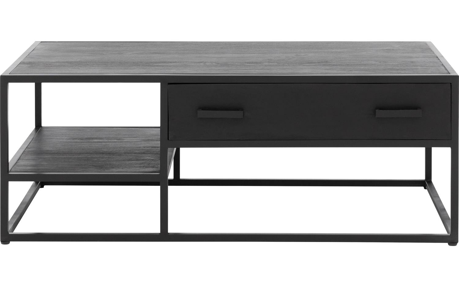 - De combinatie van zwart hout en poedercoat zwart metaal geven de salontafel een chique uistraling.