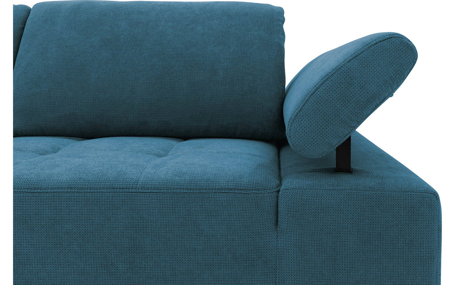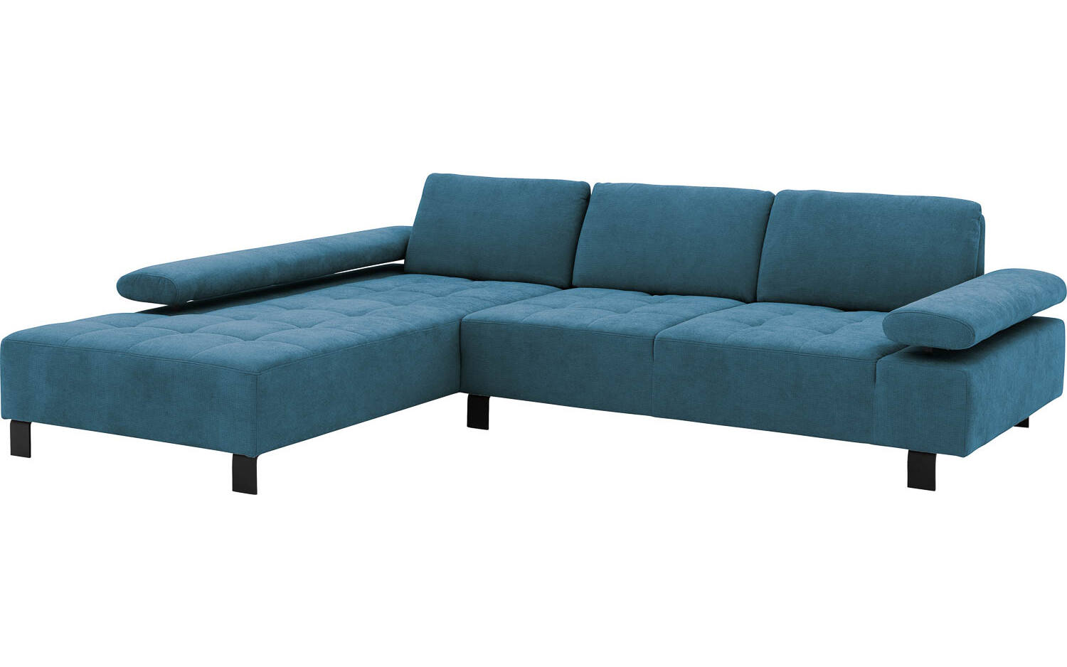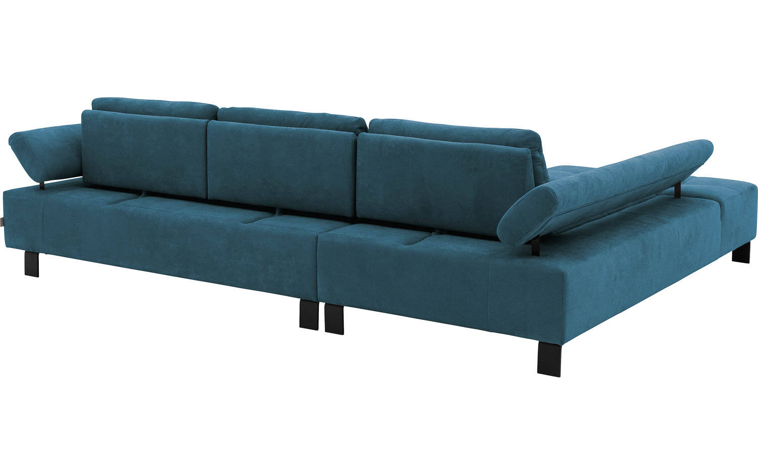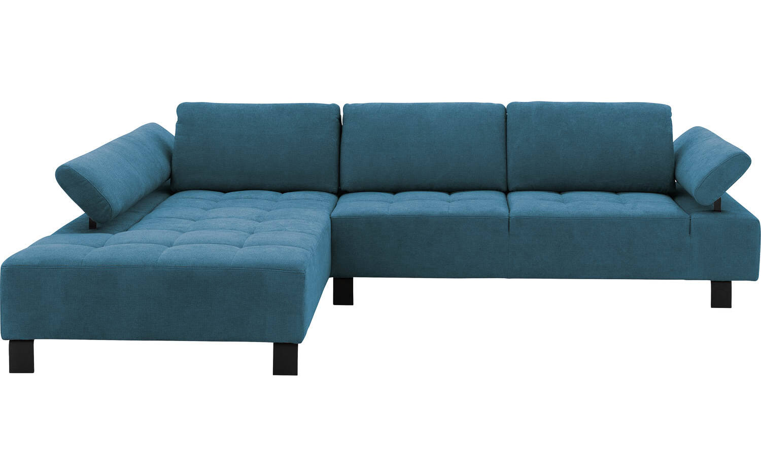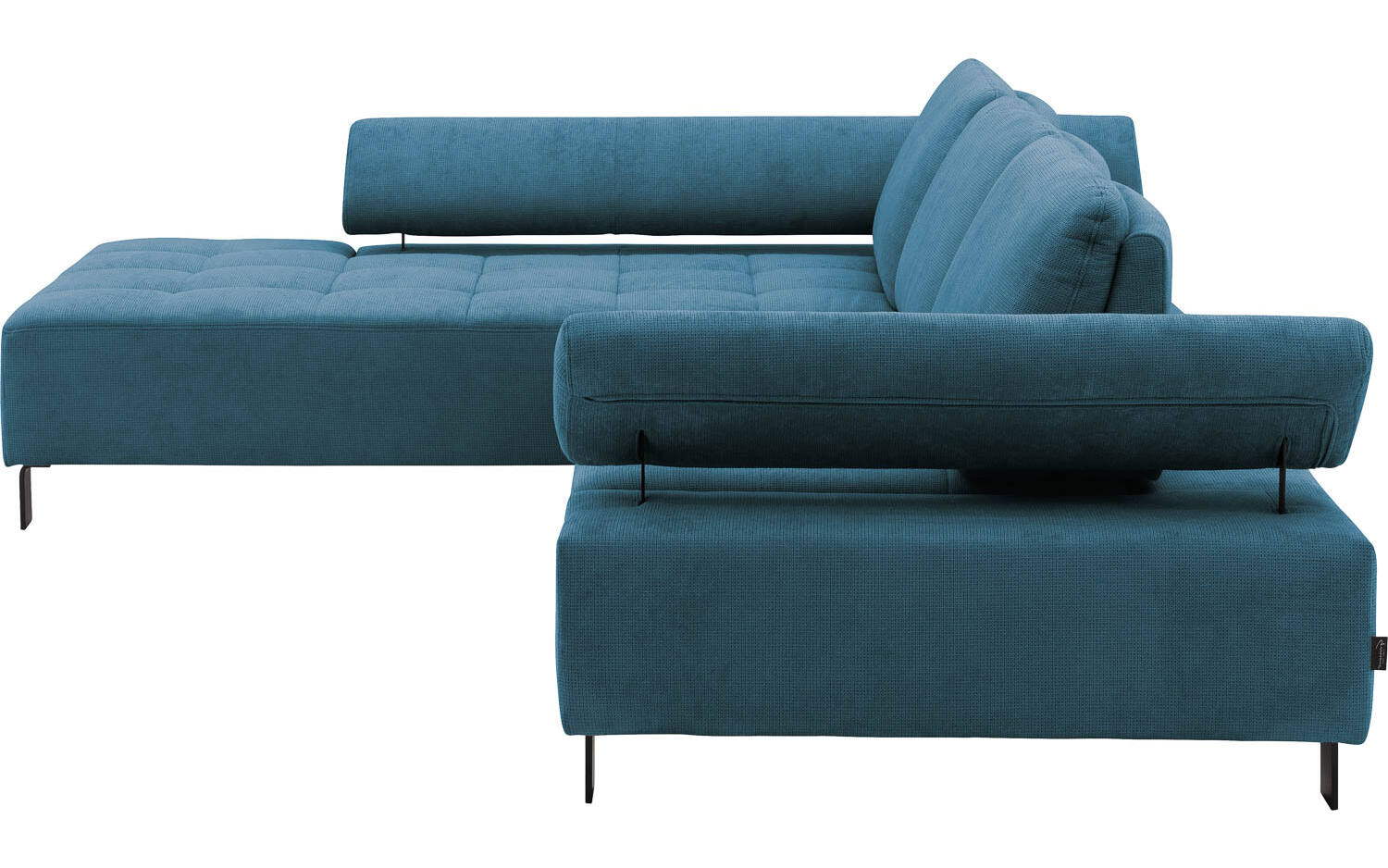 Het azuurblauwe kleurenpalet maakt deze hoekbank veelzijdig en passend in verschillende woonruimtes. Door de verstelbare armleuningen en rugsteun kun je gemakkelijk wisselen tussen actief zitten en ontspannen loungen. De hoge metalen poten zorgen voor een luchtig en ruimtelijk effect in je woonkamer.