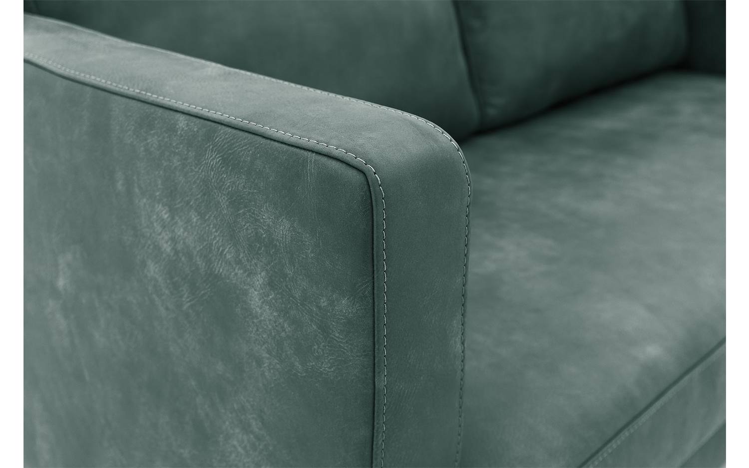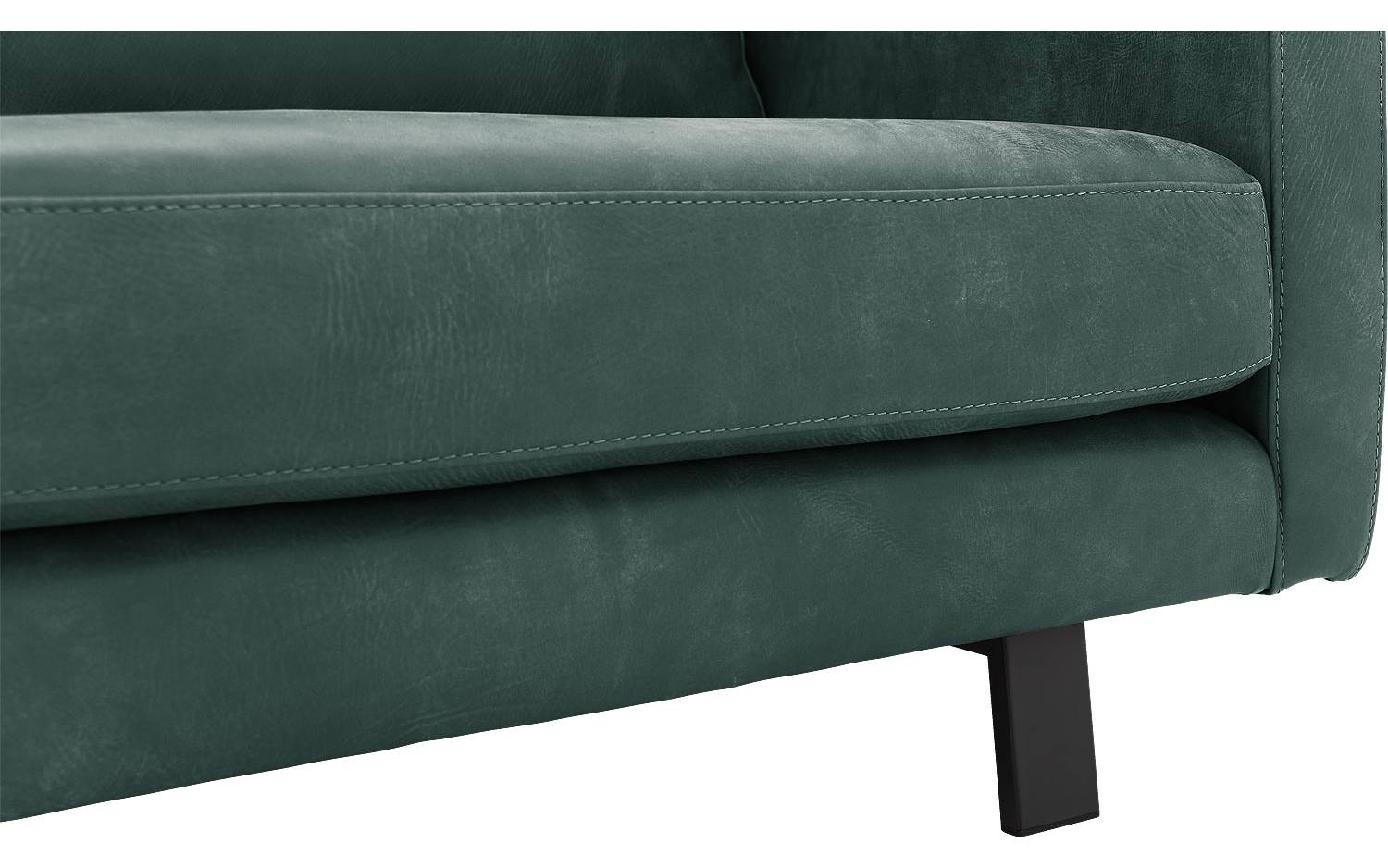 Deze 3-zits bank van buffalo leer heeft een stoere, urban industriële uitstraling. Het bosgroene leer met zijn suède-achtige textuur geeft karakter en warmte aan je interieur. De sierlijke zwarte metalen poten van 12 cm hoog zorgen voor een eigentijds en robuust design.
