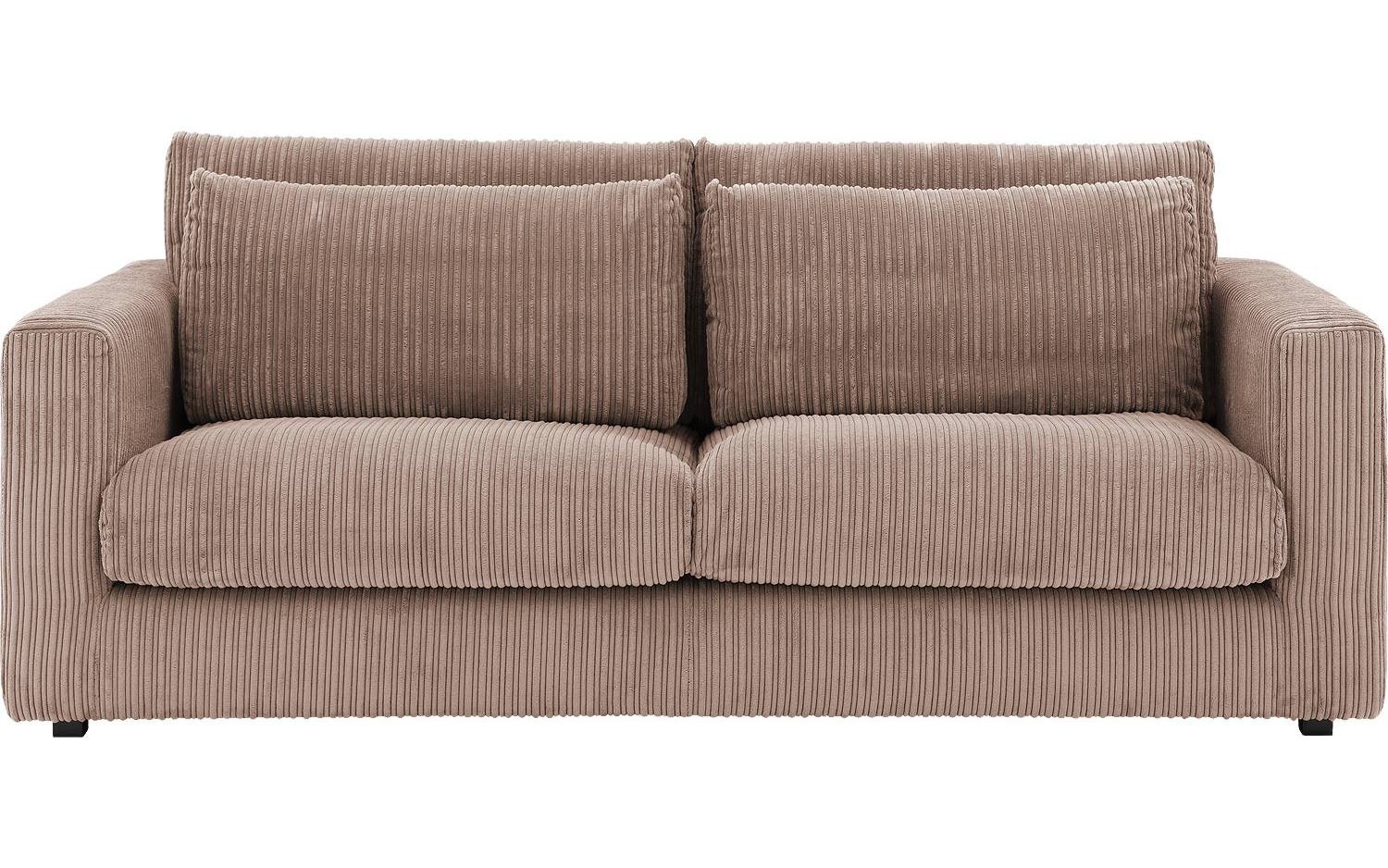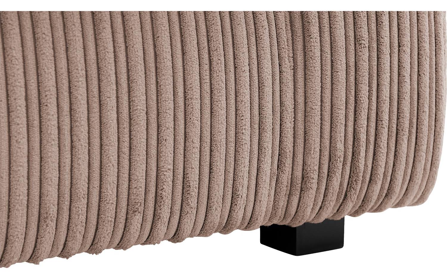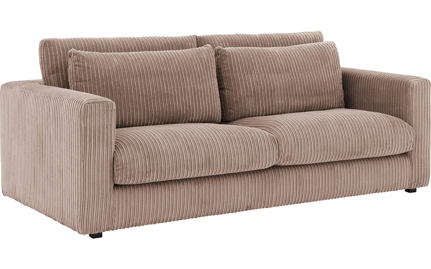 De ribstof in warme mokkakleur geeft deze driezitsbank een eigentijdse landelijke uitstraling. De structuur van de ribstof zorgt voor een speels effect dat mooi past bij verschillende interieurstijlen. De kunststof poten in zwart vormen een subtiel, modern contrast met de warme bruintinten.