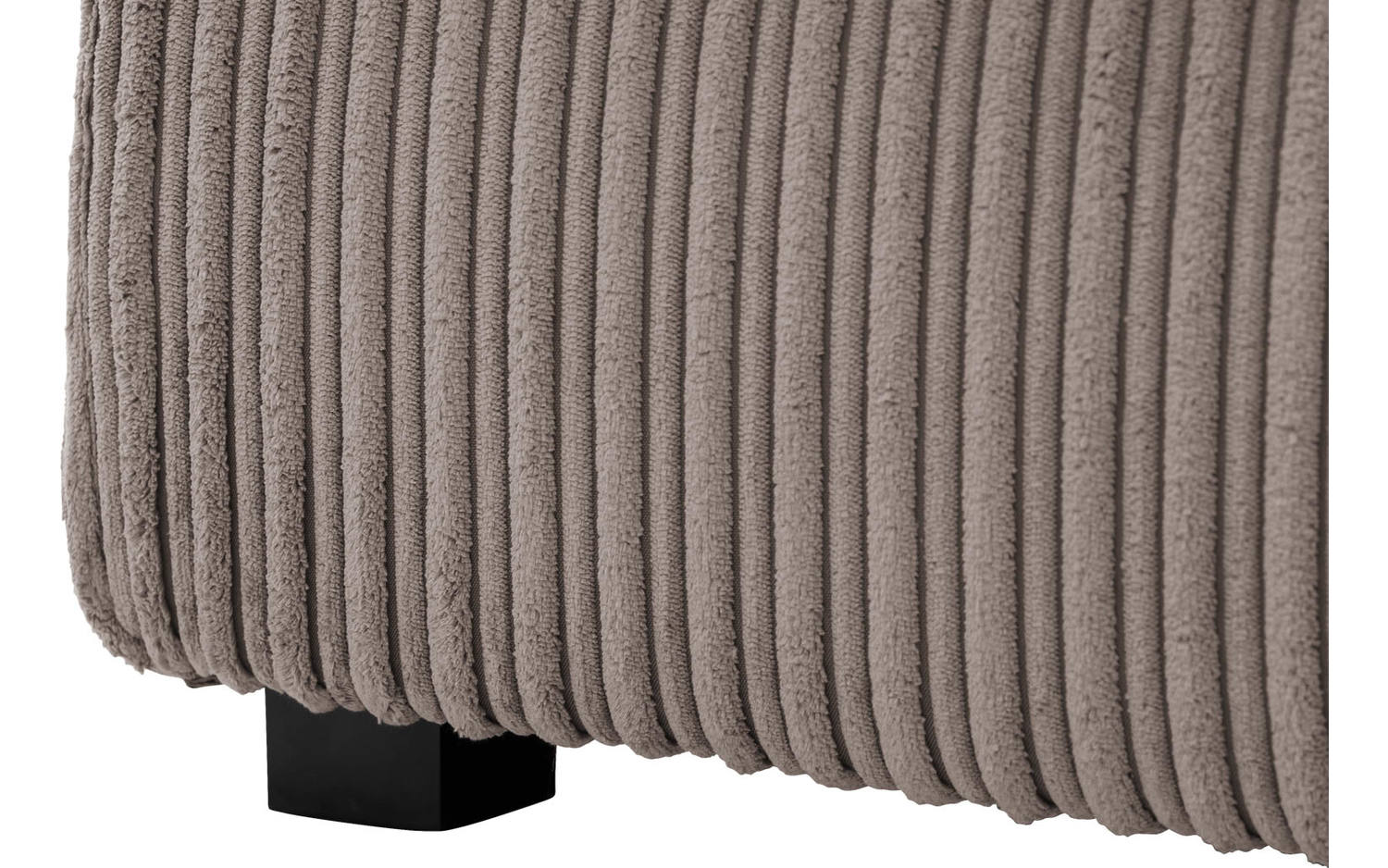 De zwarte kunststof poten geven deze hoekbank een stevige basis en maken de stijl compleet. De combinatie van de warme taupebruine ribstof en de strakke zwarte poten zorgt voor een mooi contrast. Ravenia is daarnaast zeer praktisch en verkrijgbaar in verschillende uitvoeringen, stoffen en kleuren.