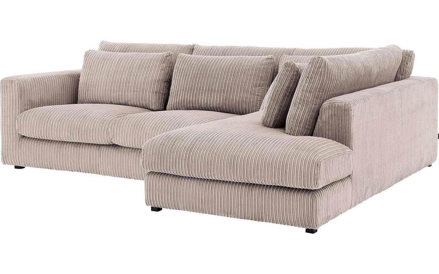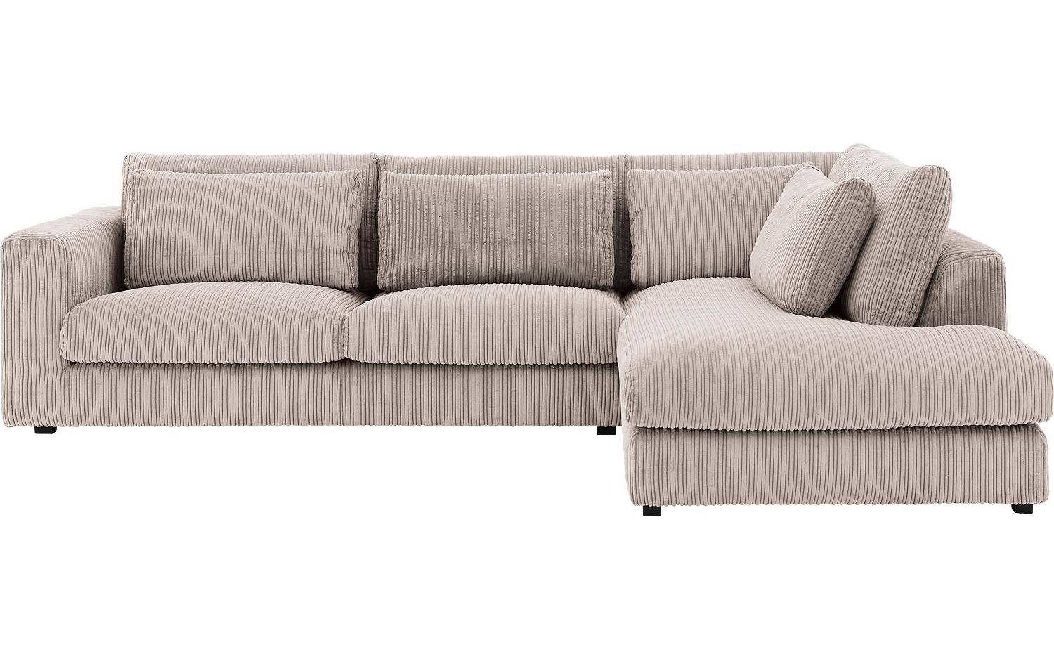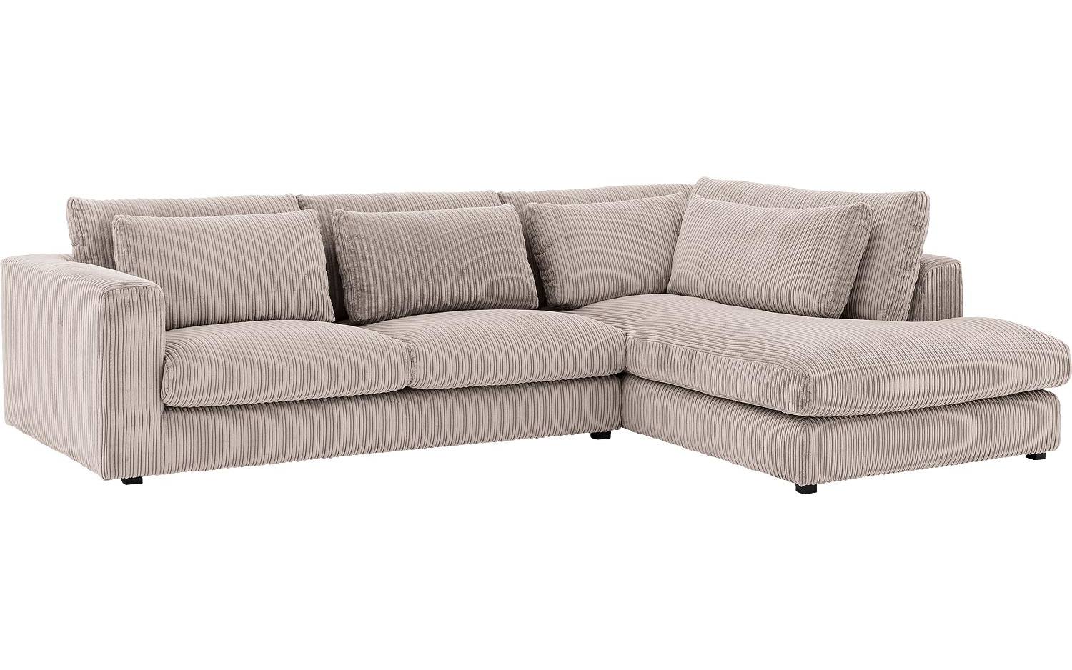 Met zijn warme ribstof in de kleur muskaat heeft deze hoekbank een knusse uitstraling. De stof heeft een mooie ribbel-structuur die zorgt voor een landelijk karakter. De zwarte kunststof poten geven Ravenia een stijlvol landelijke look die tijdloos is.