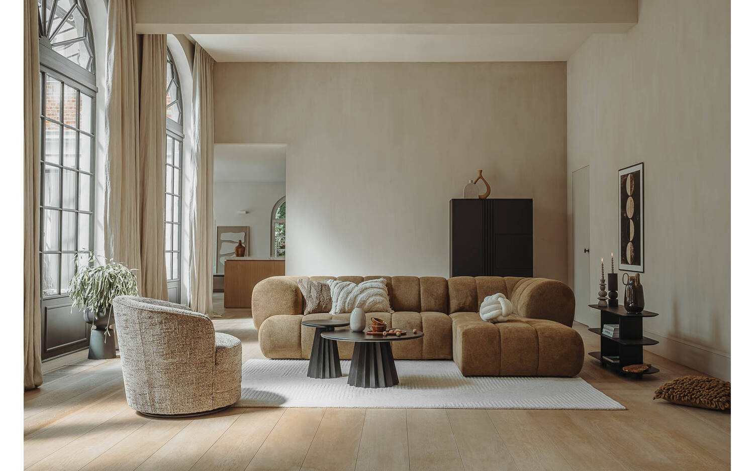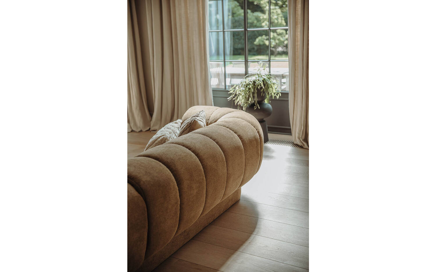 Zelfs de achterkant van Weave is prachtig vormgegeven. De rond gevormde rugleuning komt hier echt tot zijn recht, waardoor deze hoekbank ook perfect is om midden in een ruimte te plaatsen. Weave past mooi in een modern interieur, maar geeft ook een Scandinavische of klassieke woonkamer net dat beetje extra.
