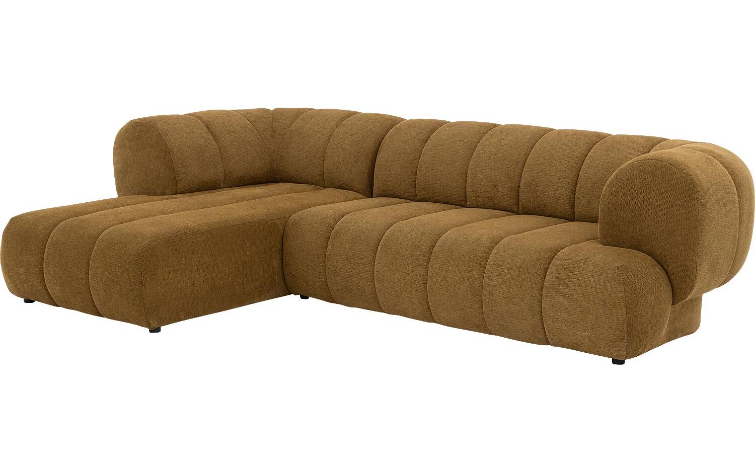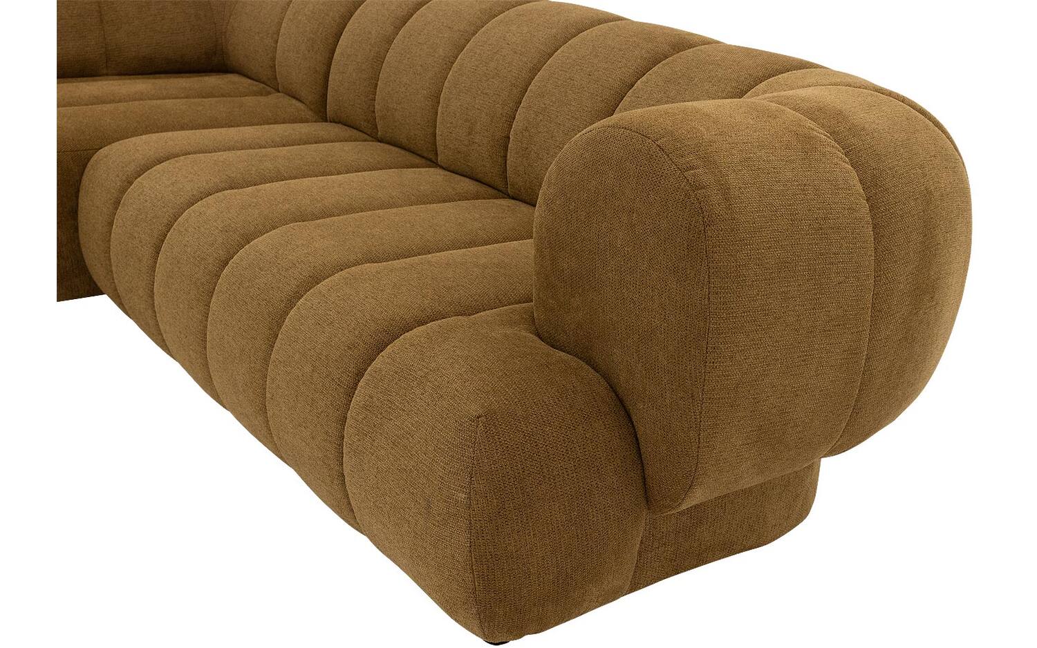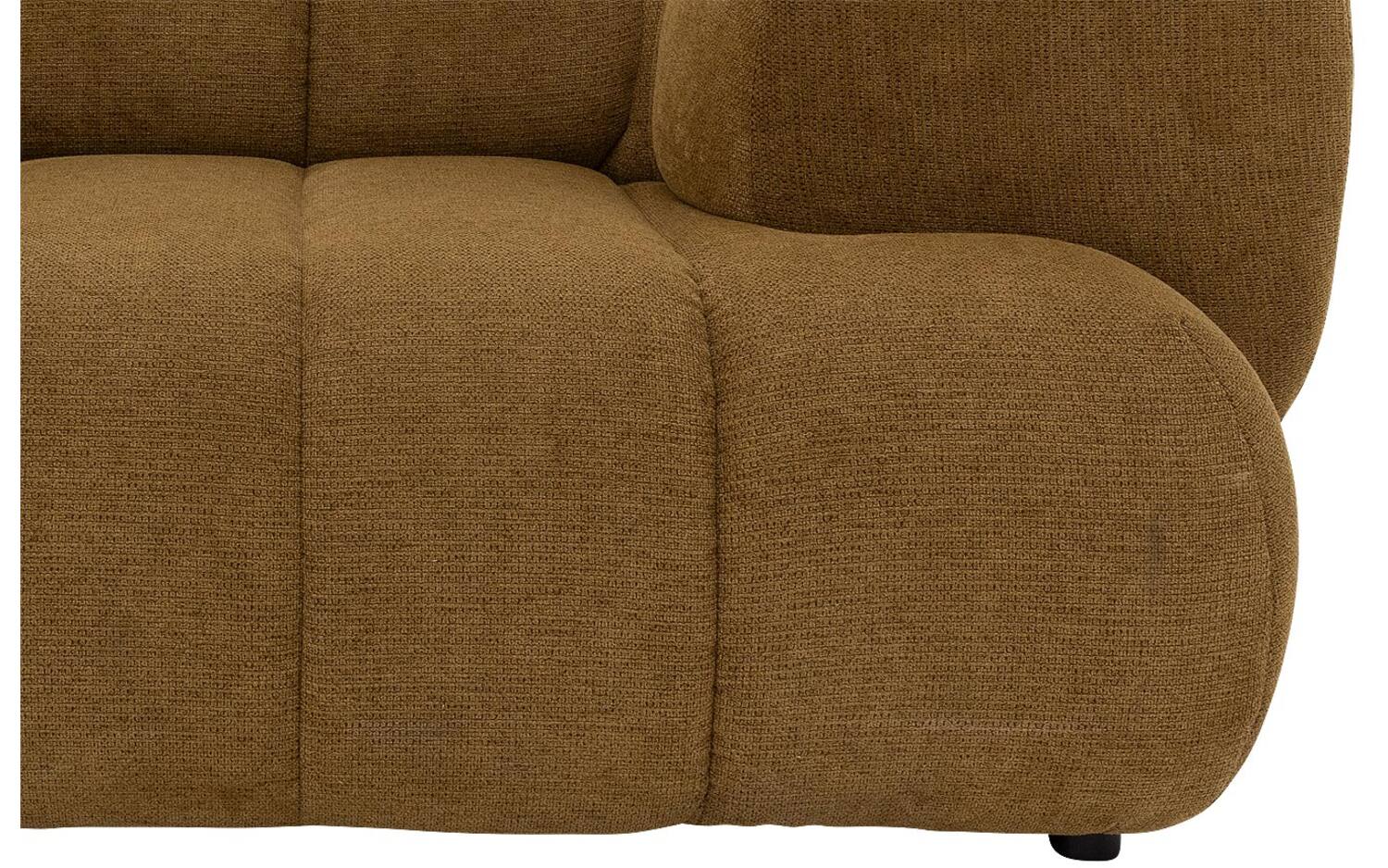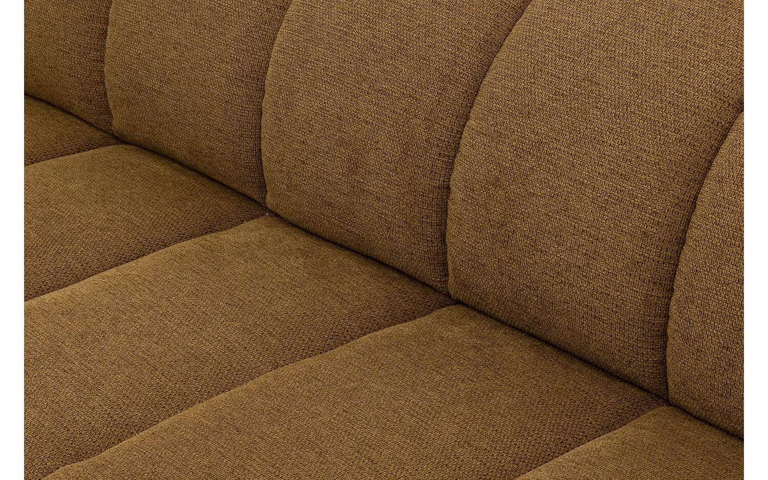 Bank Weave is ontworpen met veel oog voor detail. De subtiele verticale stiksels in de gele stof zijn niet alleen mooi, maar zorgen er ook voor dat de zitting van de bank zijn vorm behoudt. De grof geweven stof in de kleur Nova musterd geeft deze hoekbank een warme en speelse uitstraling. De kunststof poten in het zwart staan iets naar achteren geplaatst, waardoor het lijkt alsof de bank nét boven de vloer zweeft.