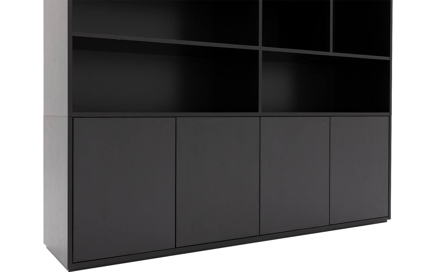 - De strakke, dunne belijning en zwarte houtlook geven buffetkast Madrid en stijlvolle uitstraling.