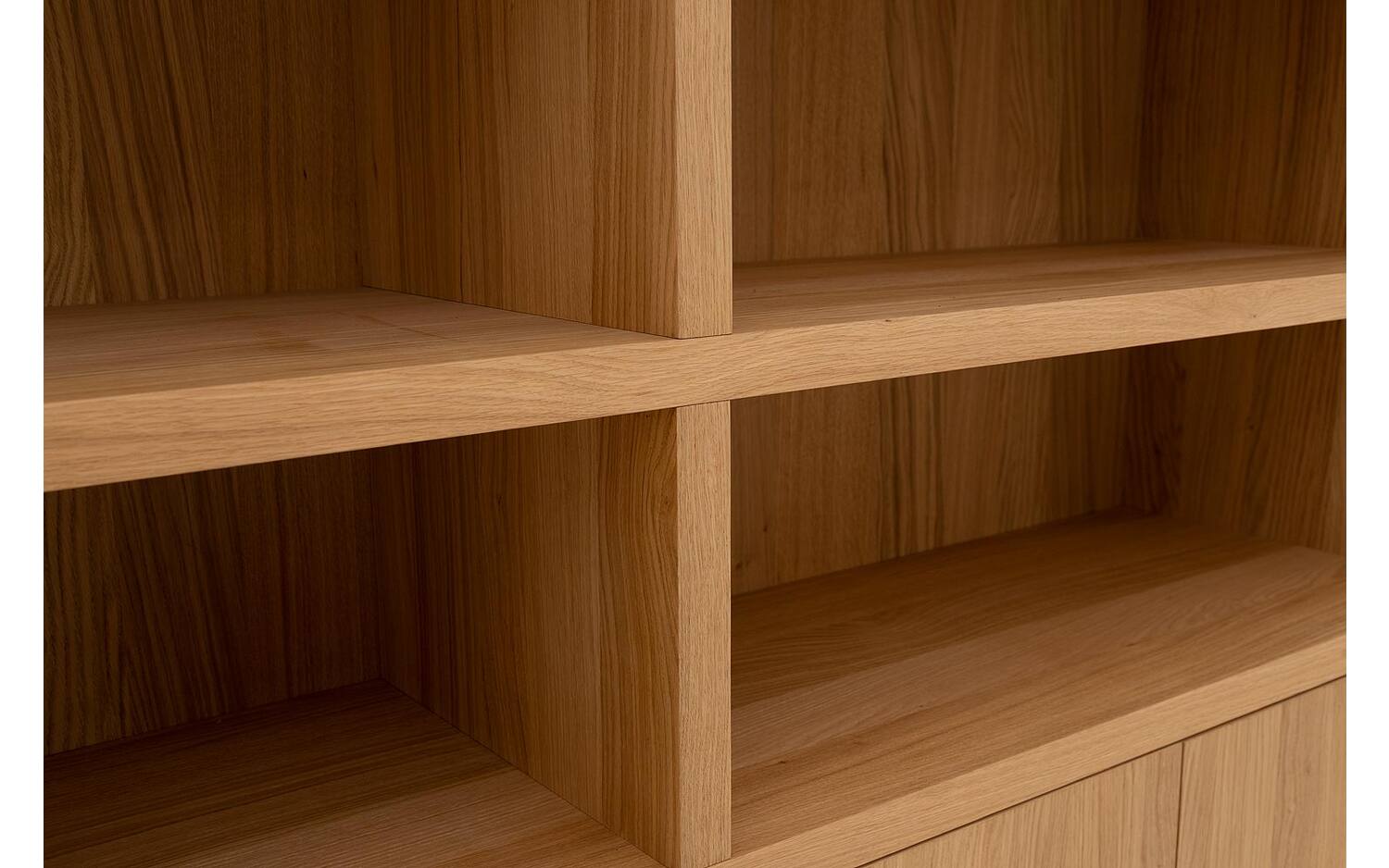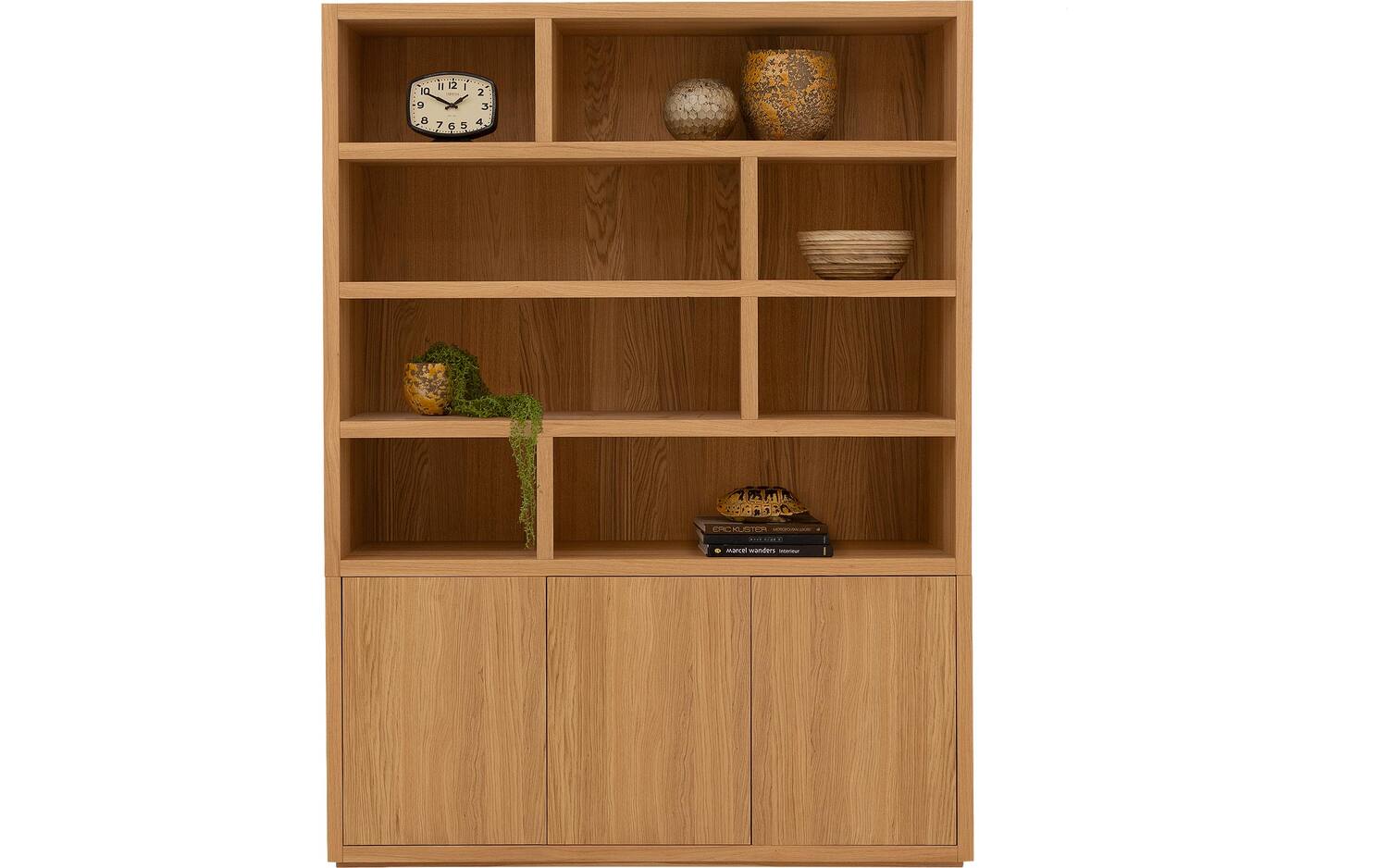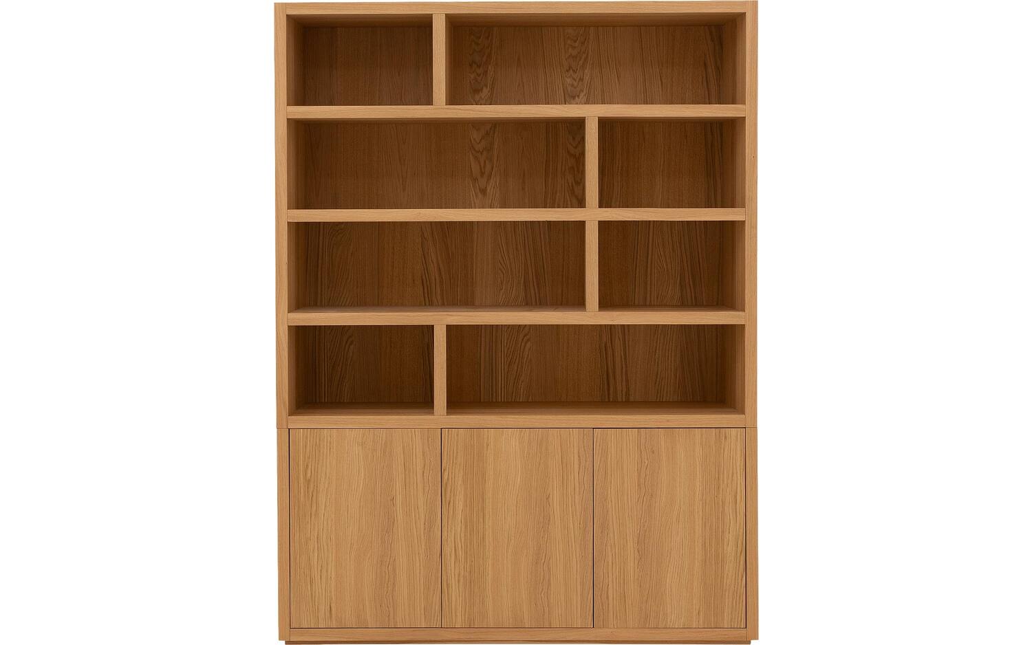 In de 8 open vakken komen jouw mooiste servies, fotolijstjes en woonaccessoires prachtig tot hun recht. Andere spullen berg je netjes op achter de 3 gesloten deuren. Zo creëer je een persoonlijke mix van tentoonstellingsruimte en praktische opberg.