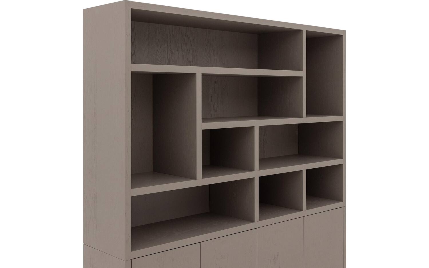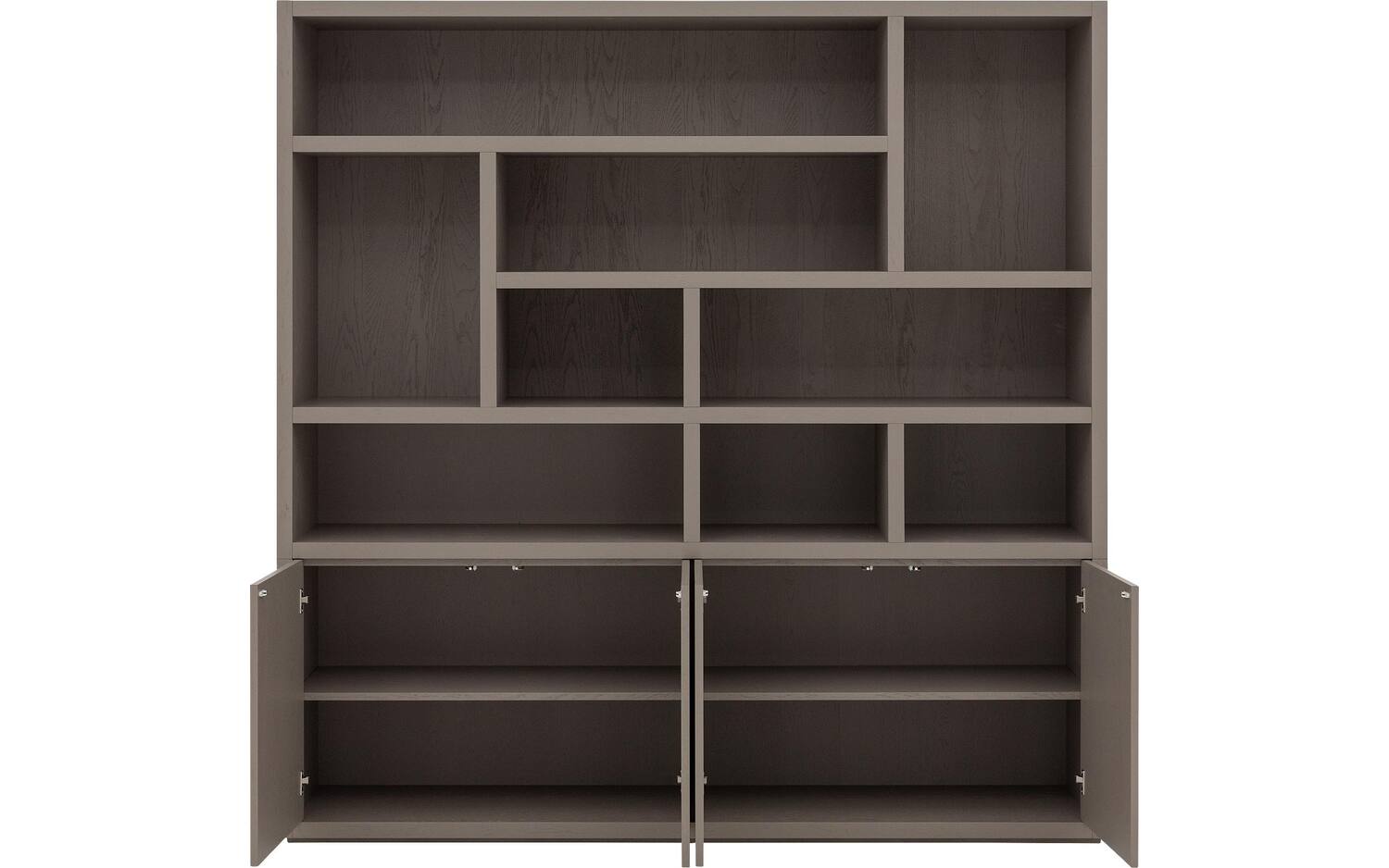 Creëer jouw persoonlijke stijl met decoratieve woonaccessoires in de open vakken. Serviesgoed, fotolijstjes of designobjecten komen prachtig tot hun recht tegen de warme achtergrond. De gesloten opbergruimte zorgt tegelijkertijd voor een rustige, opgeruimde uitstraling.