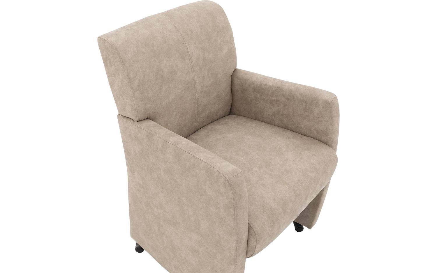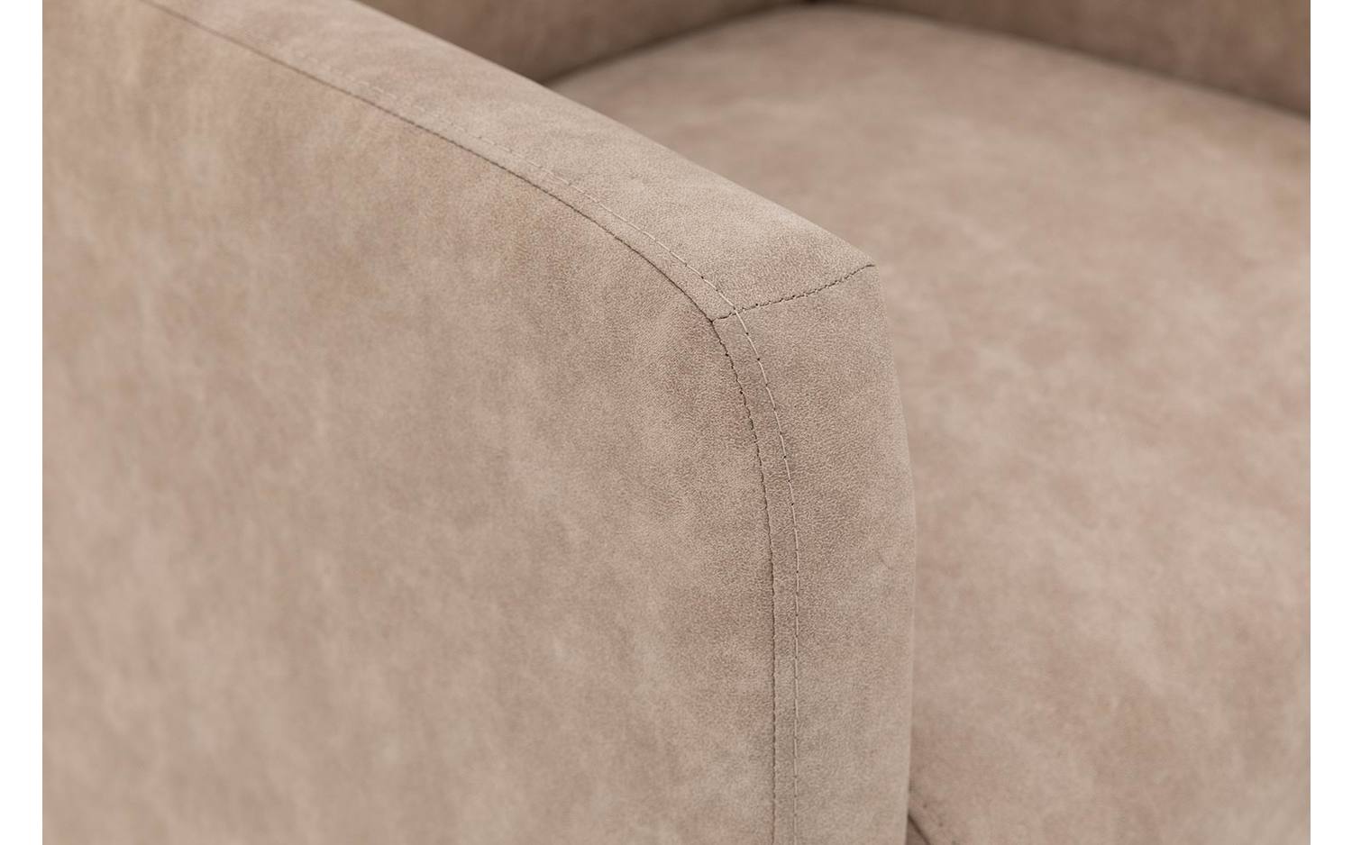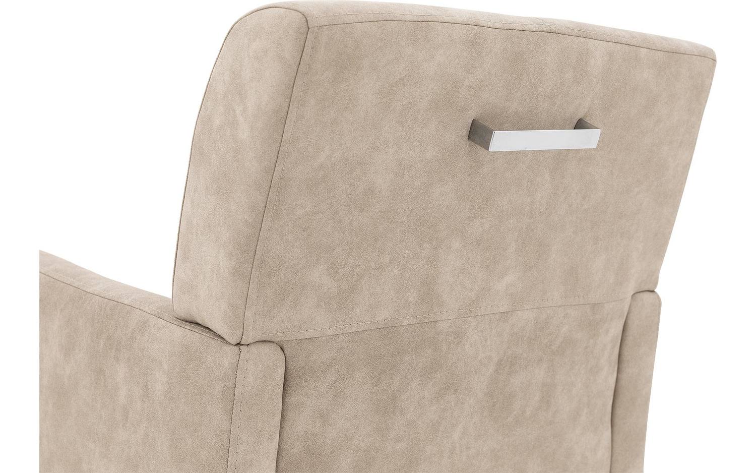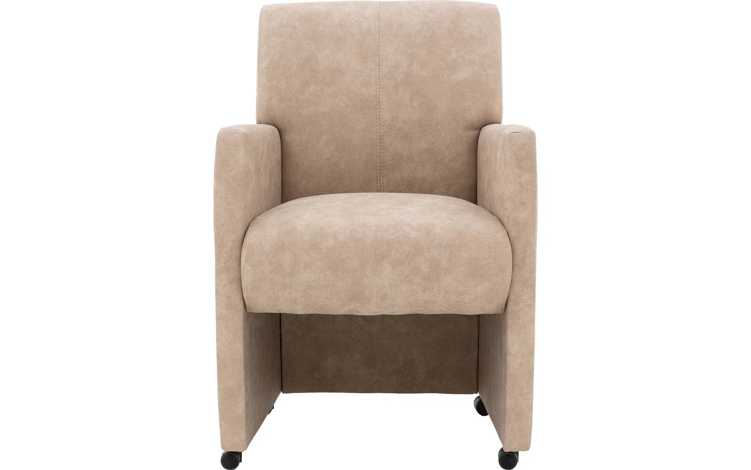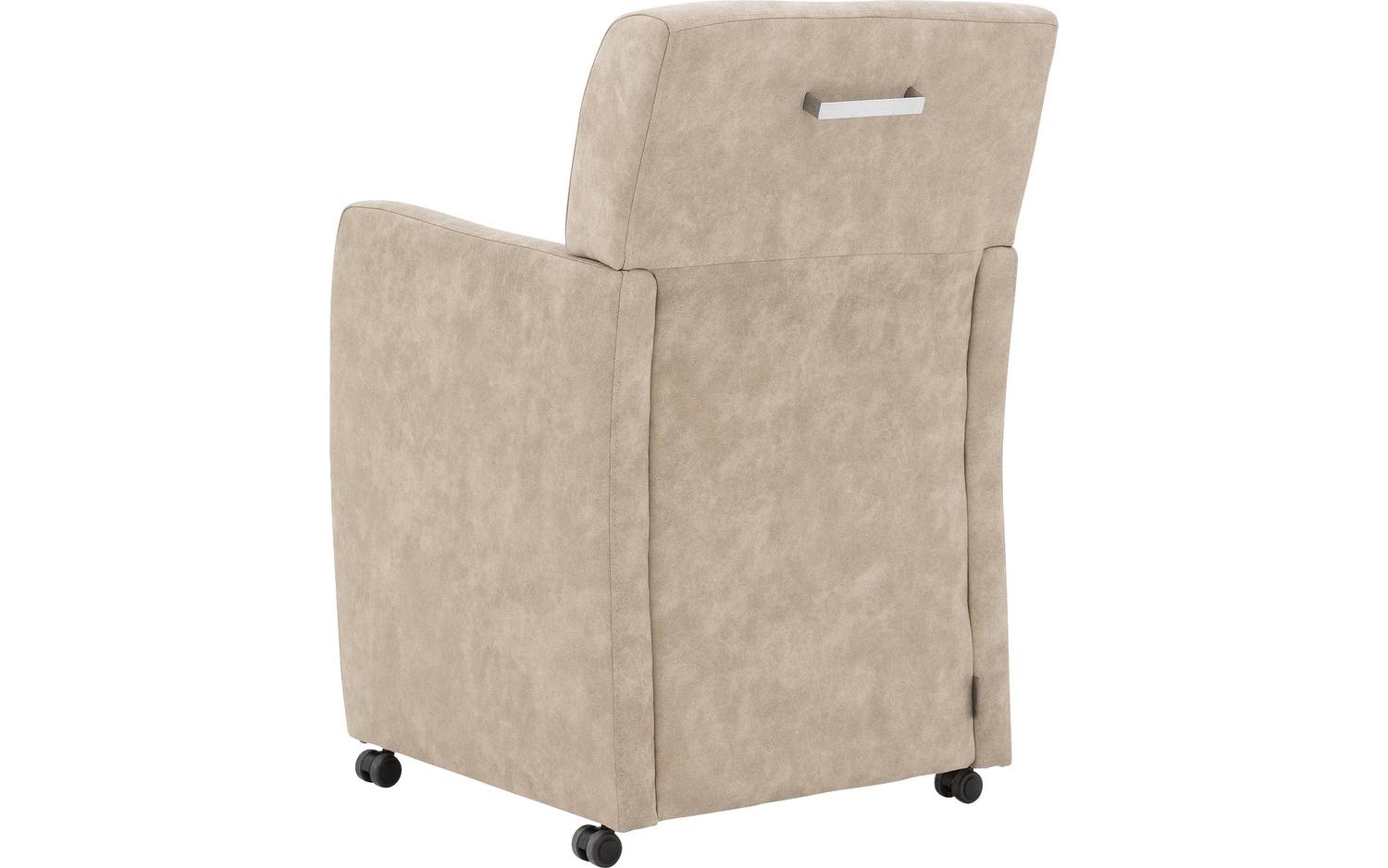 Stijlvolle details van deze beige eetkamerstoel met armleuning